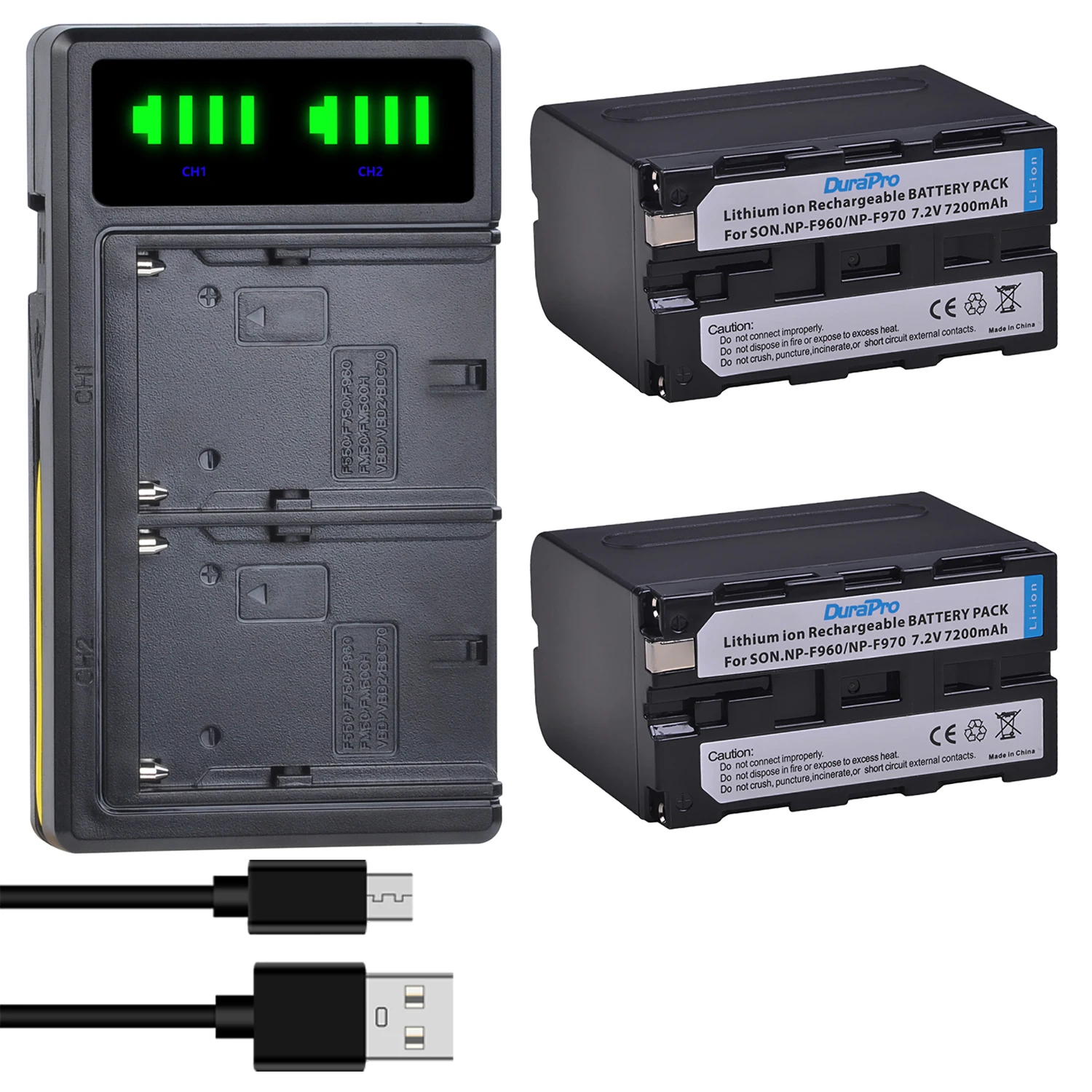 DuraPro 7200 мАч NP-F960 NP F970 камера батарея + LED USB зарядное устройство для Sony NP-F550 F770 F750 F960 FM500H FM70 QM91D QM71D HVR-V1J