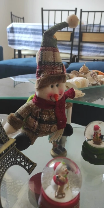 На фото магазина и полученный товар отличаются не в лучшую сторону. Снеговик доставили какой-то убогий с перекошенной головой. Обидно. Хотели чтобы сидел на Новогоднем столе.