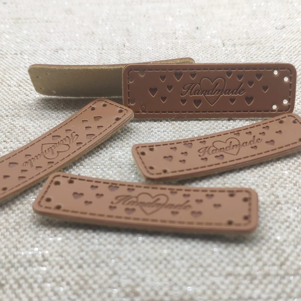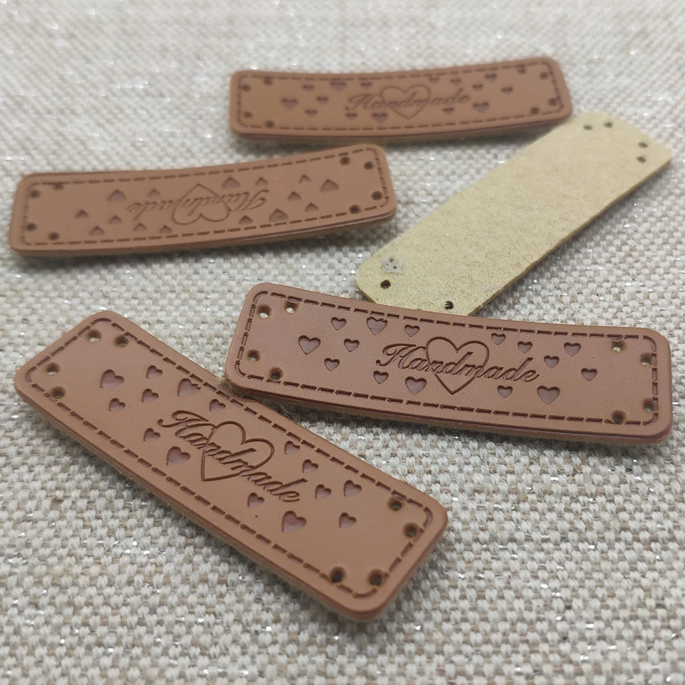 Этикетки ручной работы из искусственной кожи с сердечками для одежды, швейные этикетки с сердечками ручной работы для одежды, Подарочные кожаные этикетки ручной работы