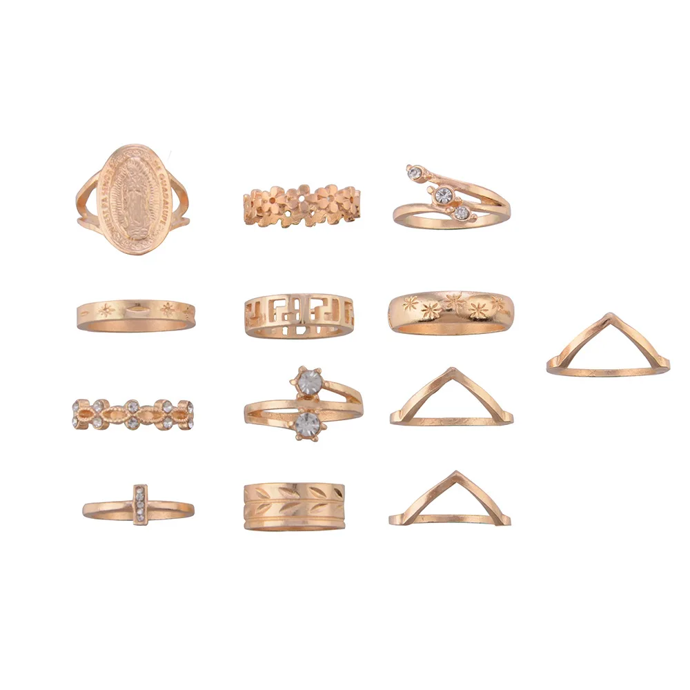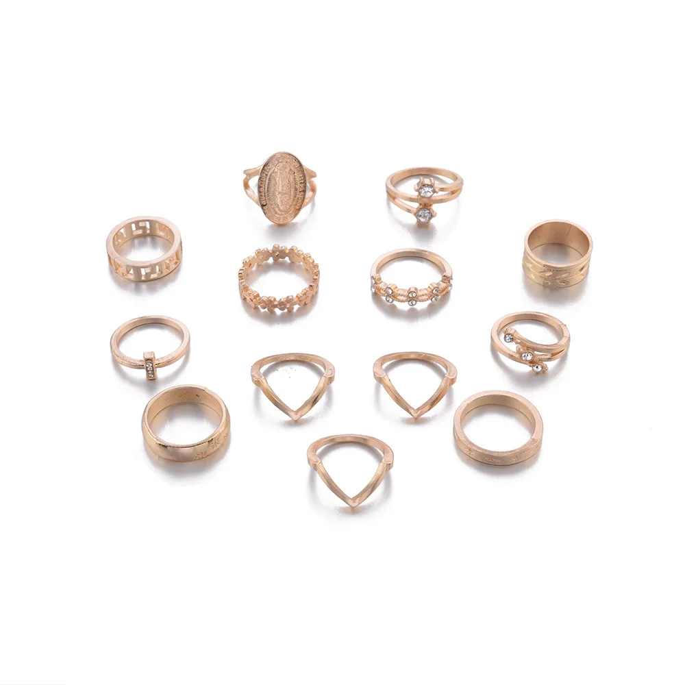 13 шт.компл. золотые кольца на пальцы средней длины для женщин, гео...