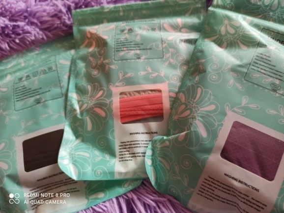У меня 38 размер, и я попросить XXL Размер хороший, они подходят и удобные. Они держатся около 4 или 5 часов, а затем очень легко моются вручную, при стирке кровь выходит почти отдельно, и они не окрашиваются. Ткань не переносится на одежду. Я рекомендую их.