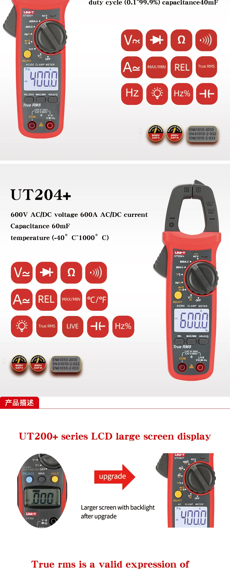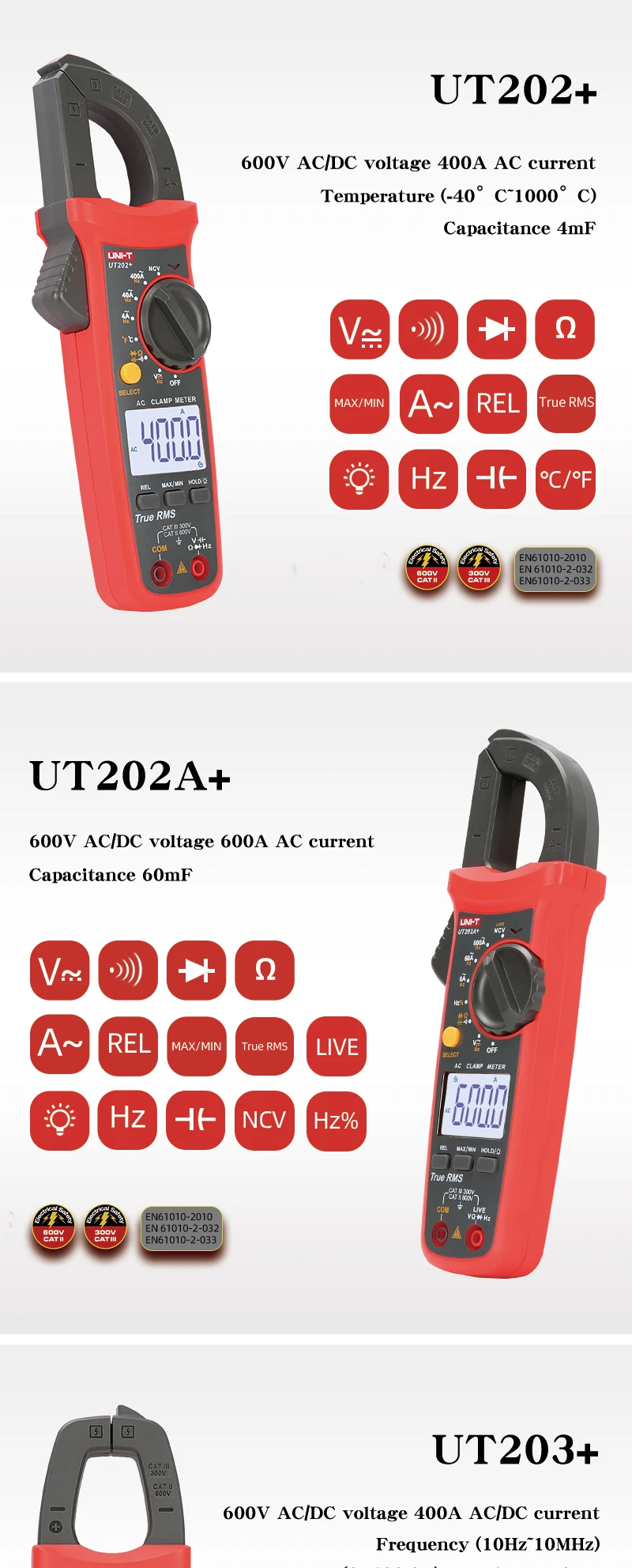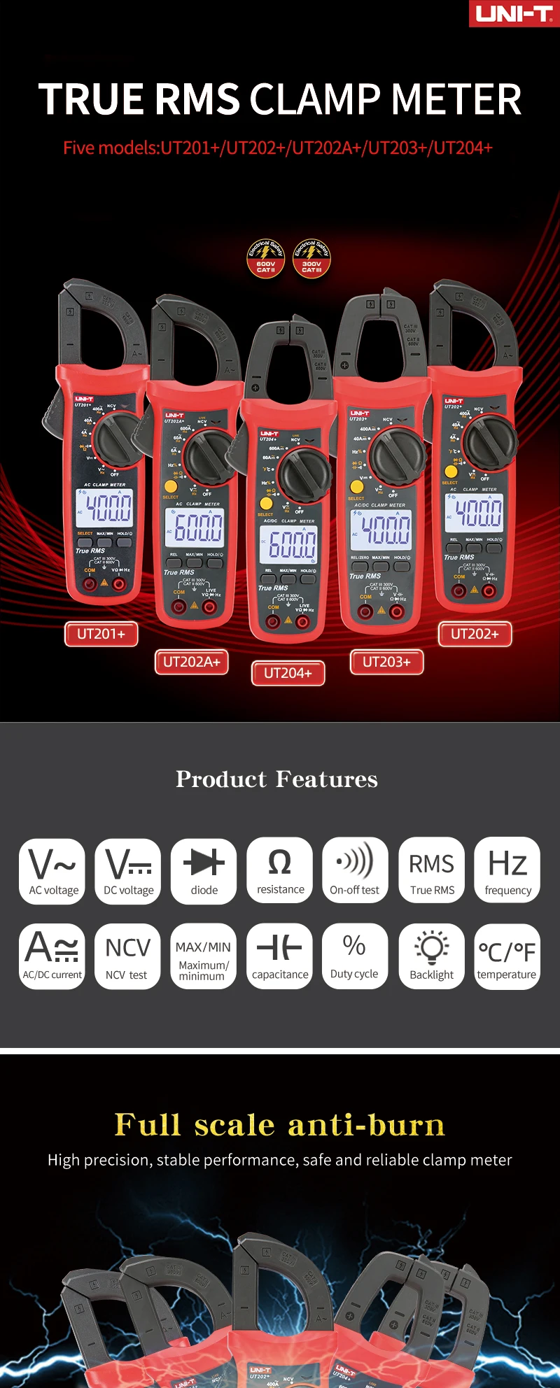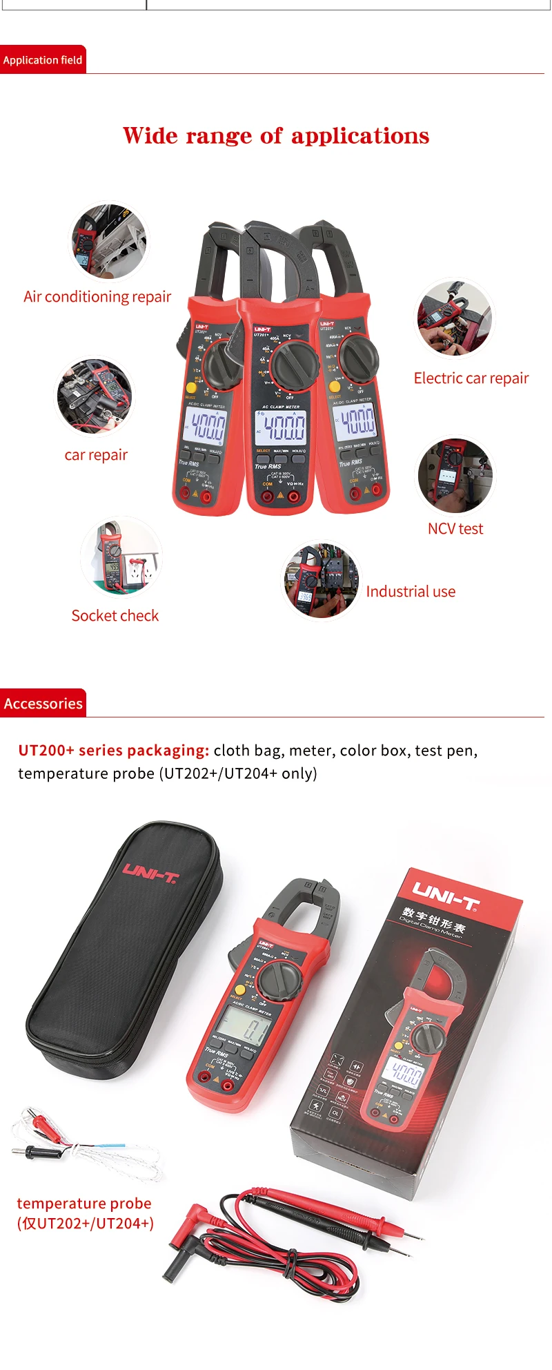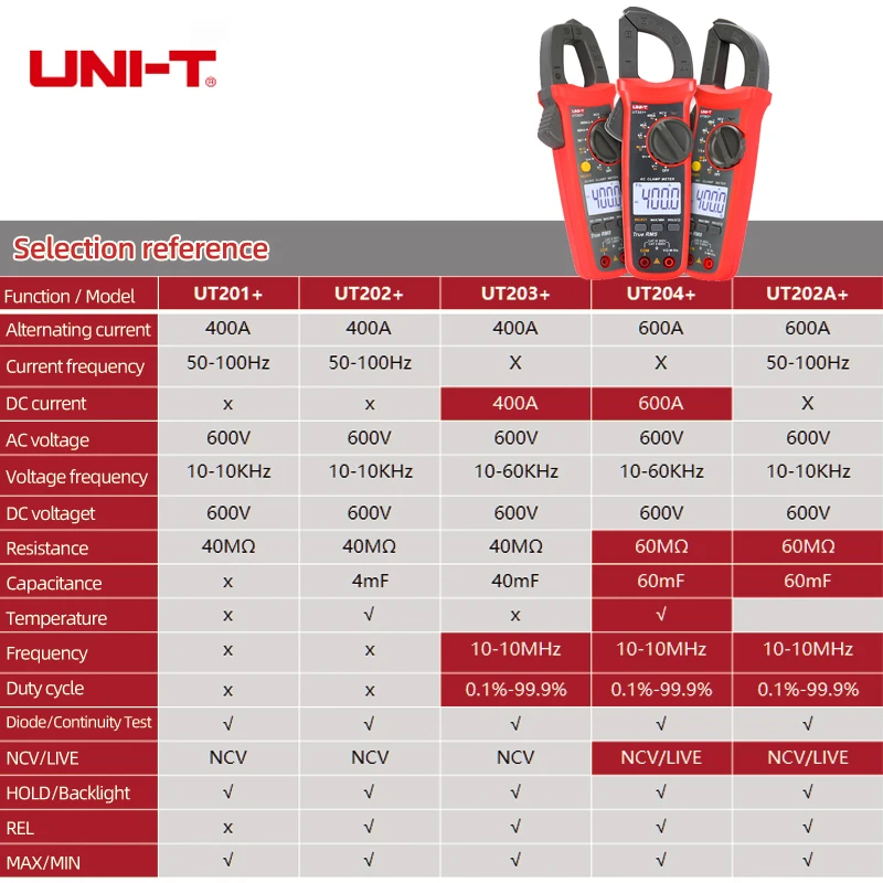 Цифровой токоизмерительный прибор UNI-T UT201 + UT202 + UT203 + UT204 + UT202 + 400-600A; автоматический диапазон true RMS высокоточный мультиметр
