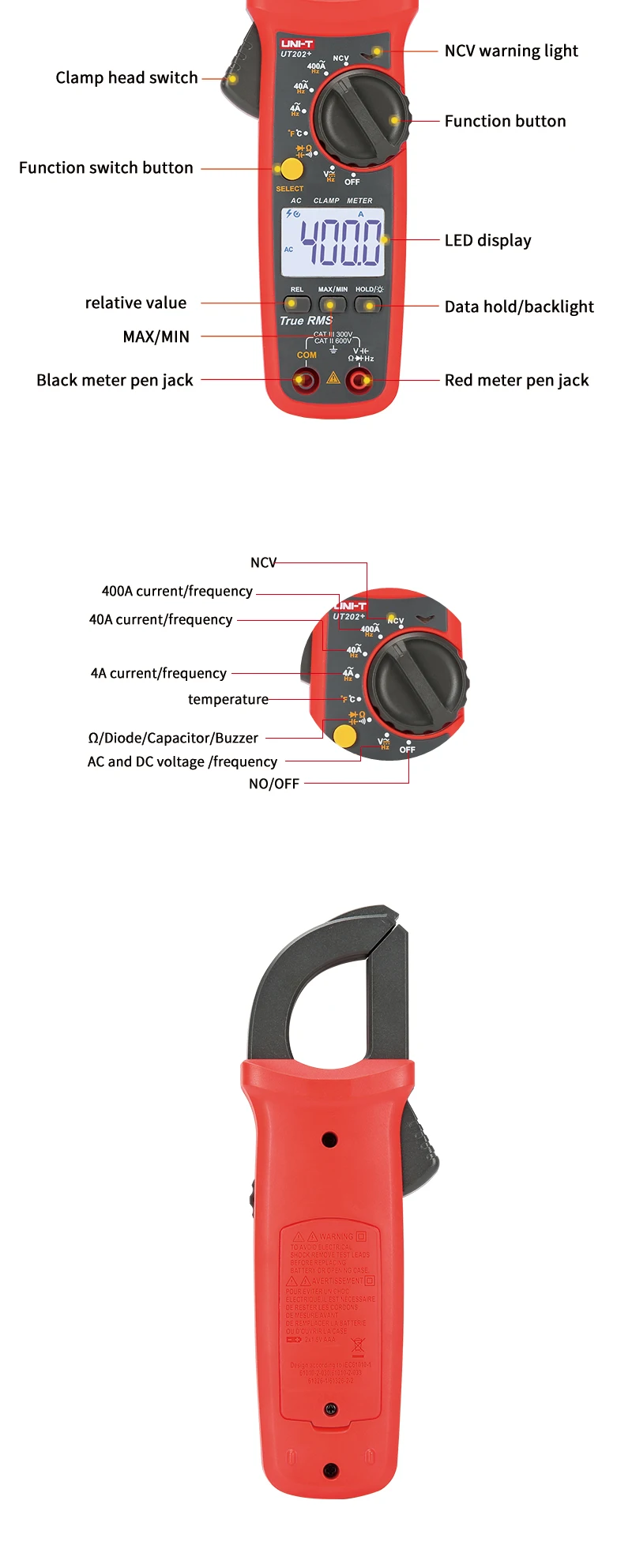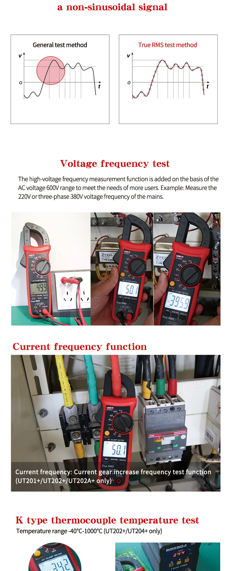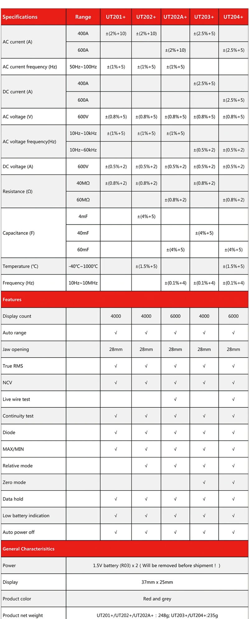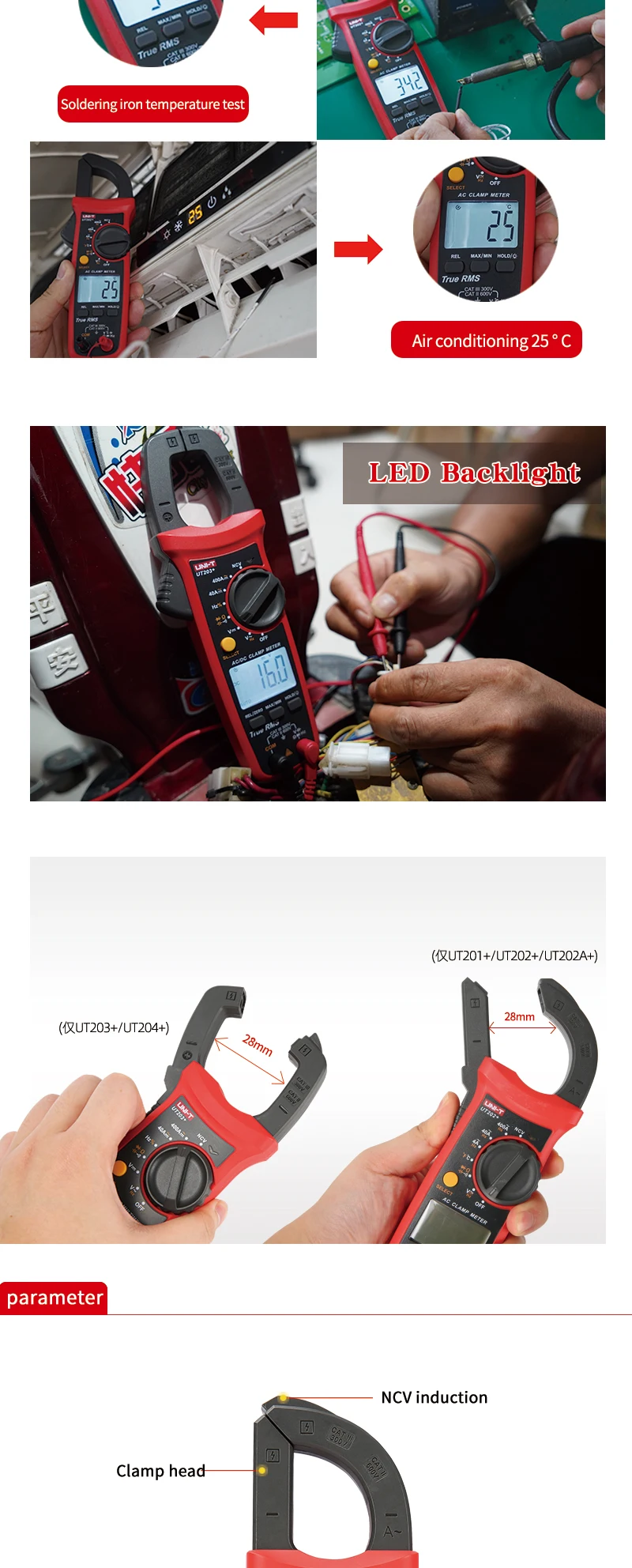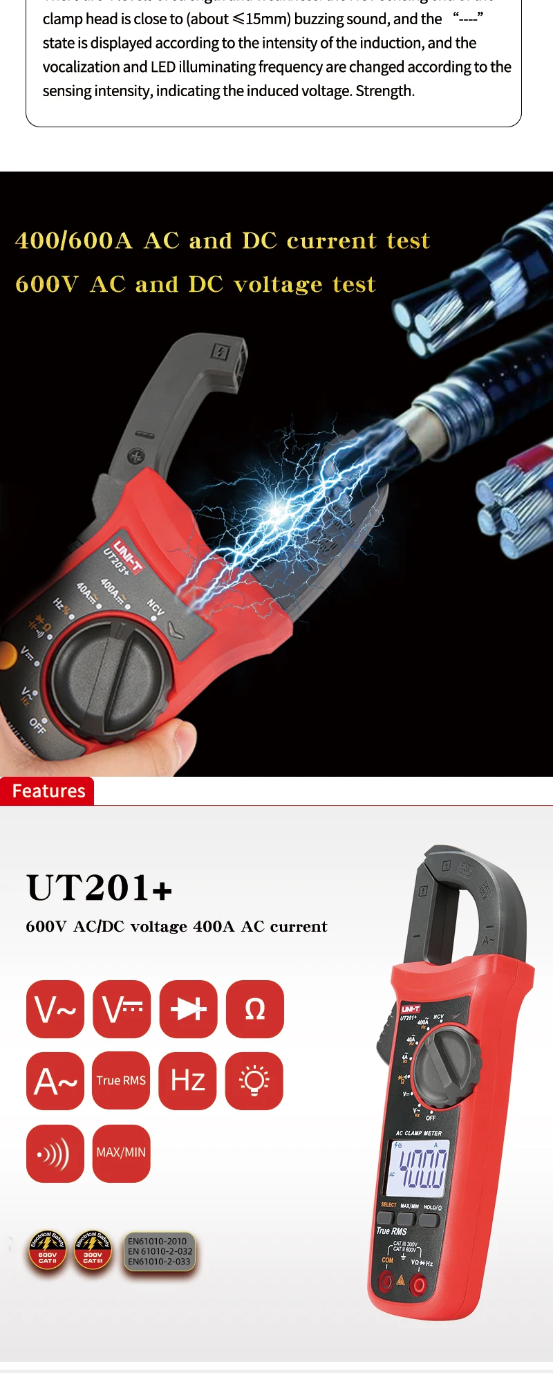 Цифровой токоизмерительный прибор UNI-T UT201 + UT202 + UT203 + UT204 + UT202 + 400-600A; автоматический диапазон true RMS высокоточный мультиметр