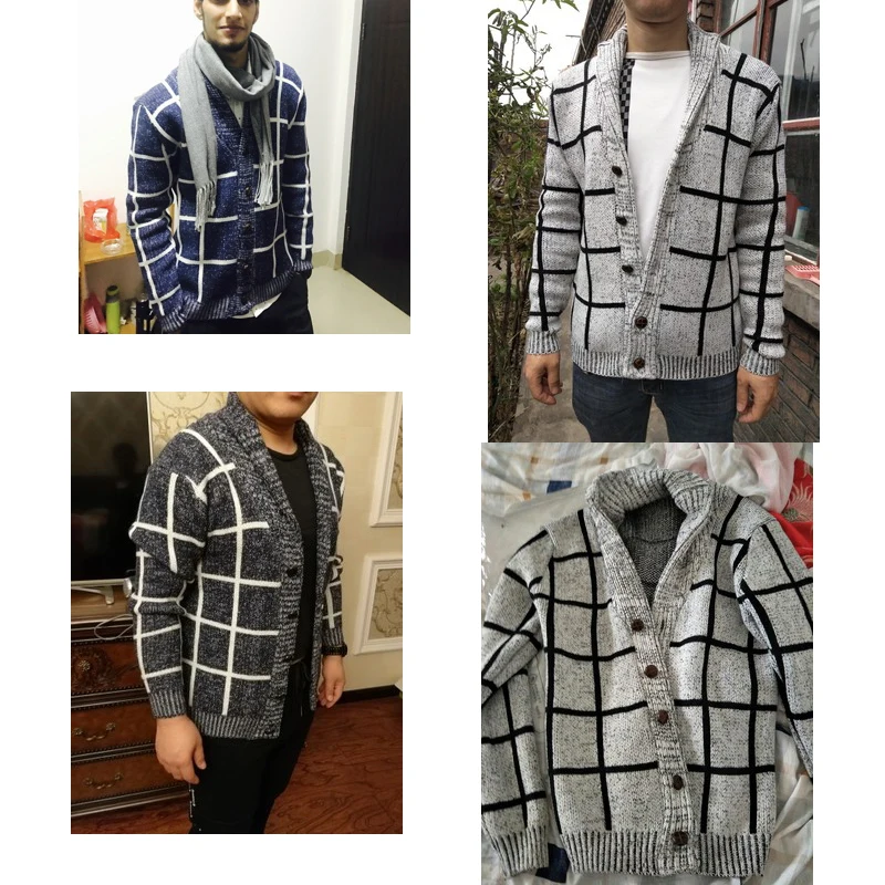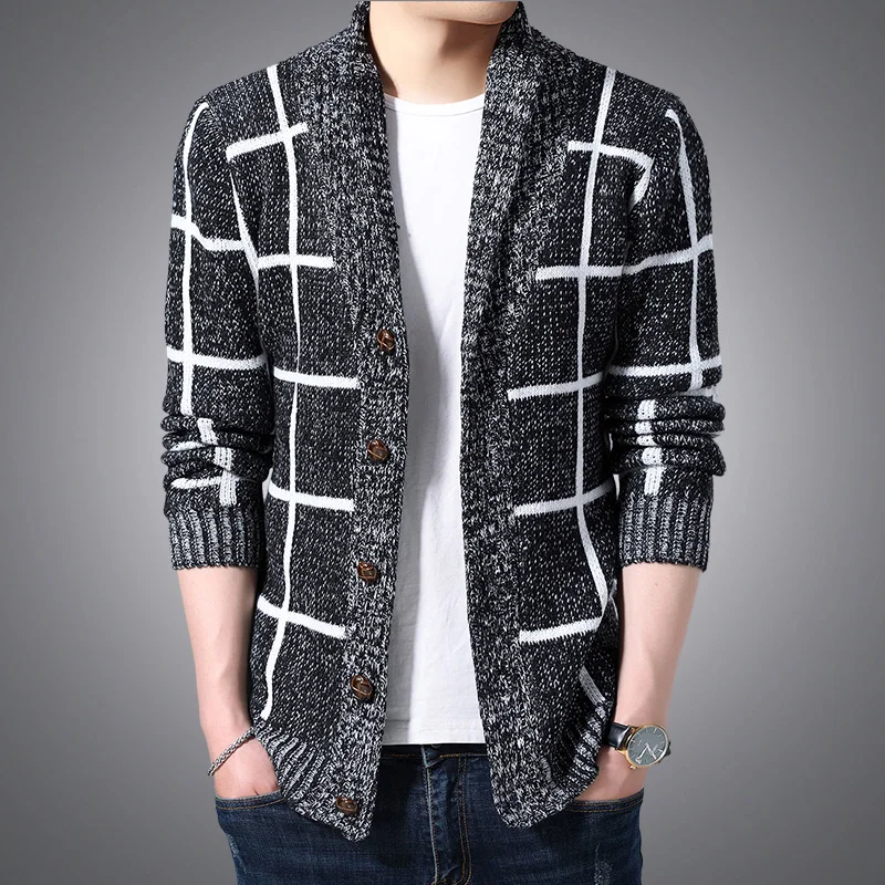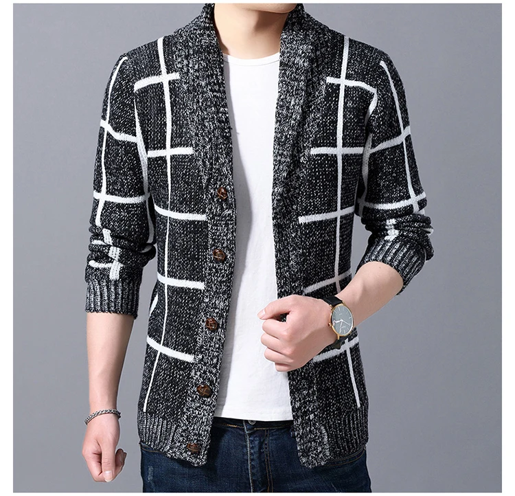 Мужской вязаный кардиган MIACAWOR, облегающий вязаный джемпер в клетку, на осень, Y162