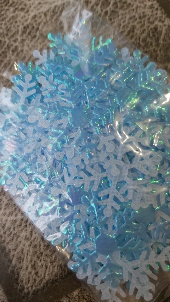 хорошенькие снежинки, но если бы они были клеевые, было бы супер! по колличеству не знаю, не пересчитывала. принес посылку домой почтальон. доставка в Украину Харьков почти месяц. упаковано хорошо, пакет с пупыркой.