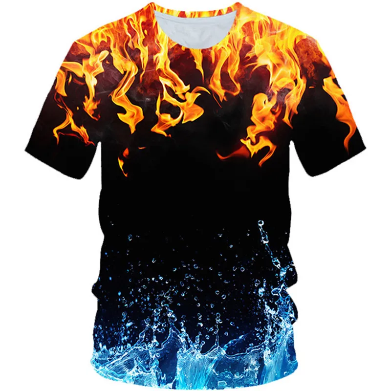 Летняя Детская 3D футболка для мальчиков и девочек, красочная футболка в стиле Харадзюку с изображением ледяного и огненного галактического пространства, Детская футболка, одежда для вечеринки, топы