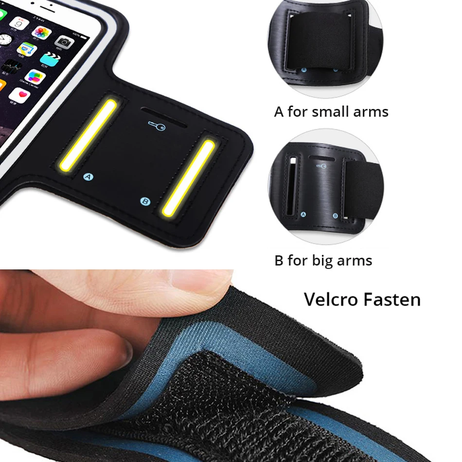 . Универсальный чехол для телефона с ремешком для бега. Сенсорное управление. Регулируемый ремень, для самой большой руки 45 см. Ежедневный Водонепроницаемый, устойчивый к поту, пыленепроницаемый, снежный. Светоотражающая полоса, светящееся видение. Набор наушников, ключей и зарядных отверстий. Если вы не уверены, пожалуйста, оставьте нам свой мобильный телефон, мы отправим вам чехол с правой повязкой.