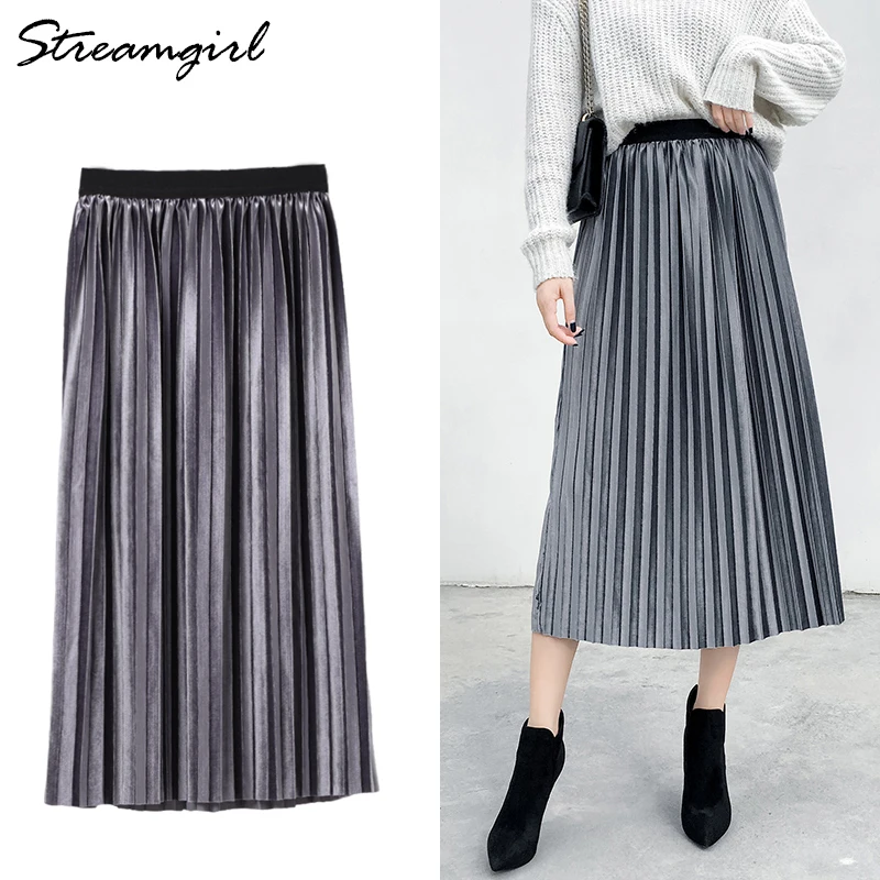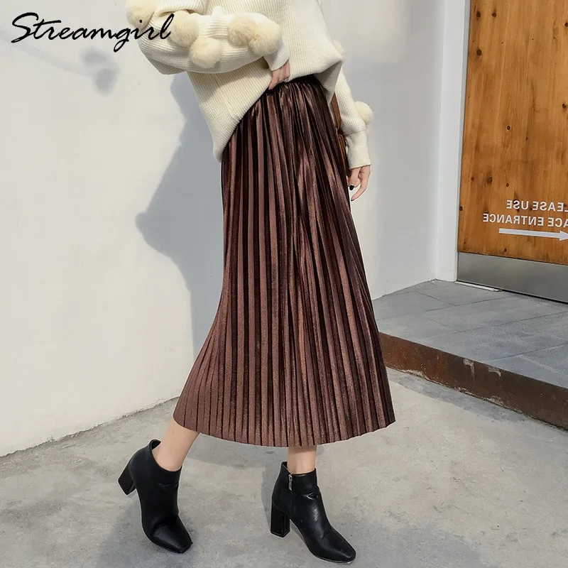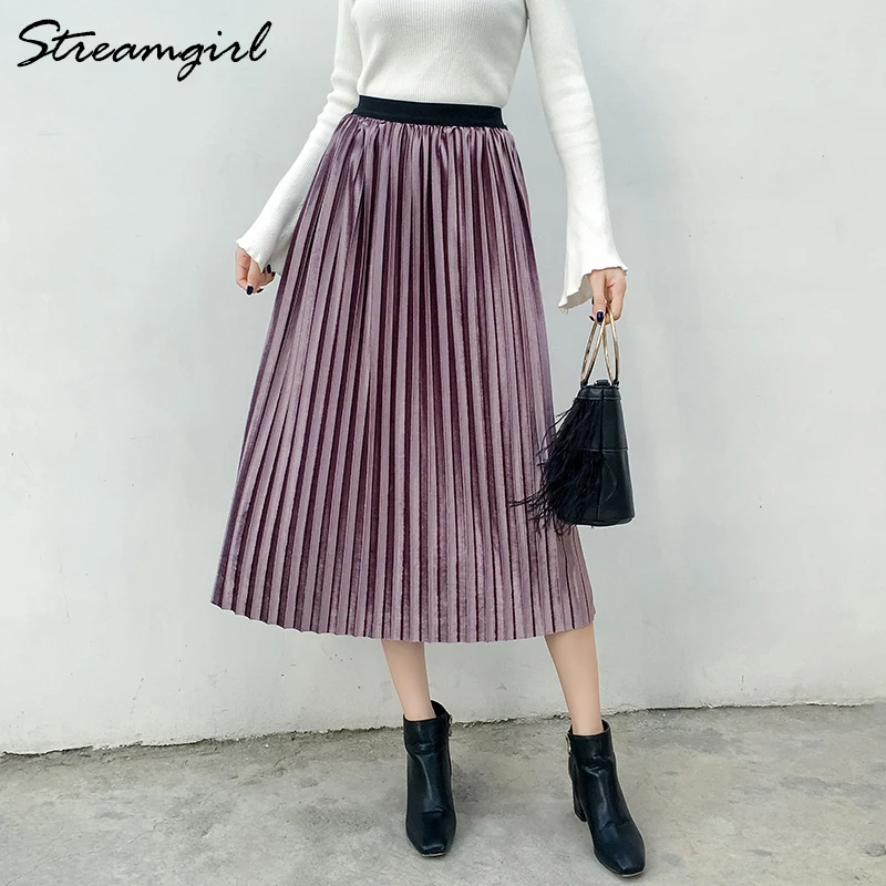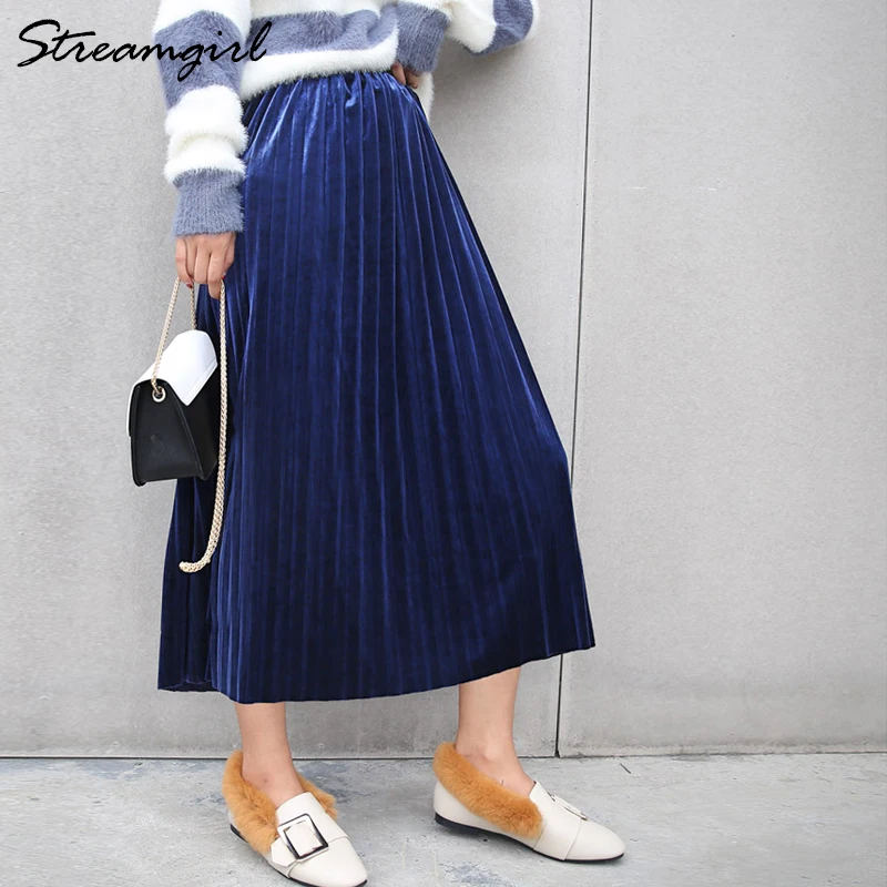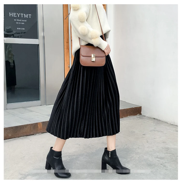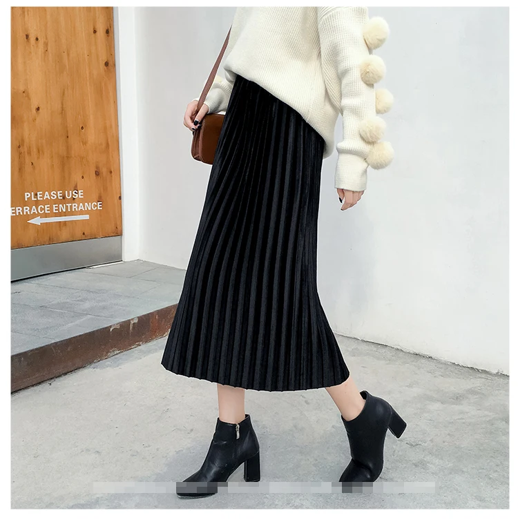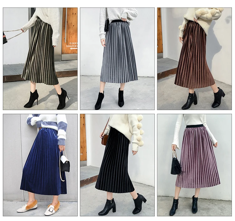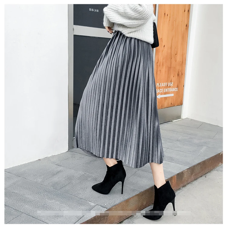 Женская плиссированная юбка макси, винтажная длинная бархатная юбка трапециевидной формы зеленого цвета для осени и зимы