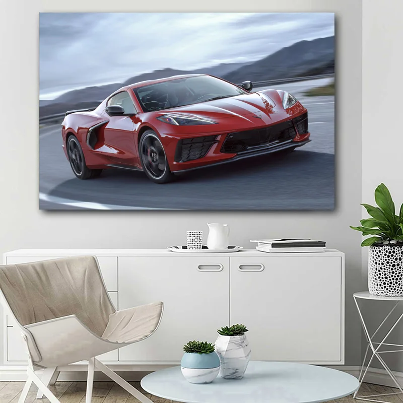Красная Автомобильная Спортивная машинка Corvette C8, автомобильные постеры, настенные художественные принты, Картина на холсте для декора гостиной