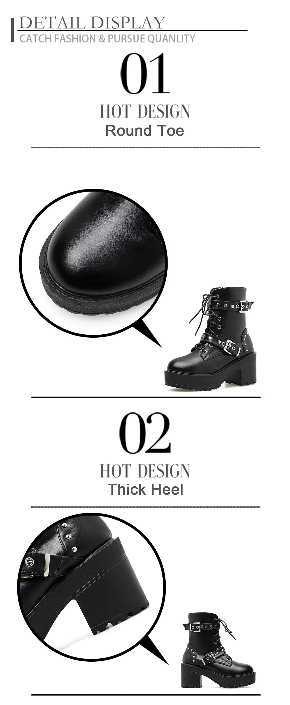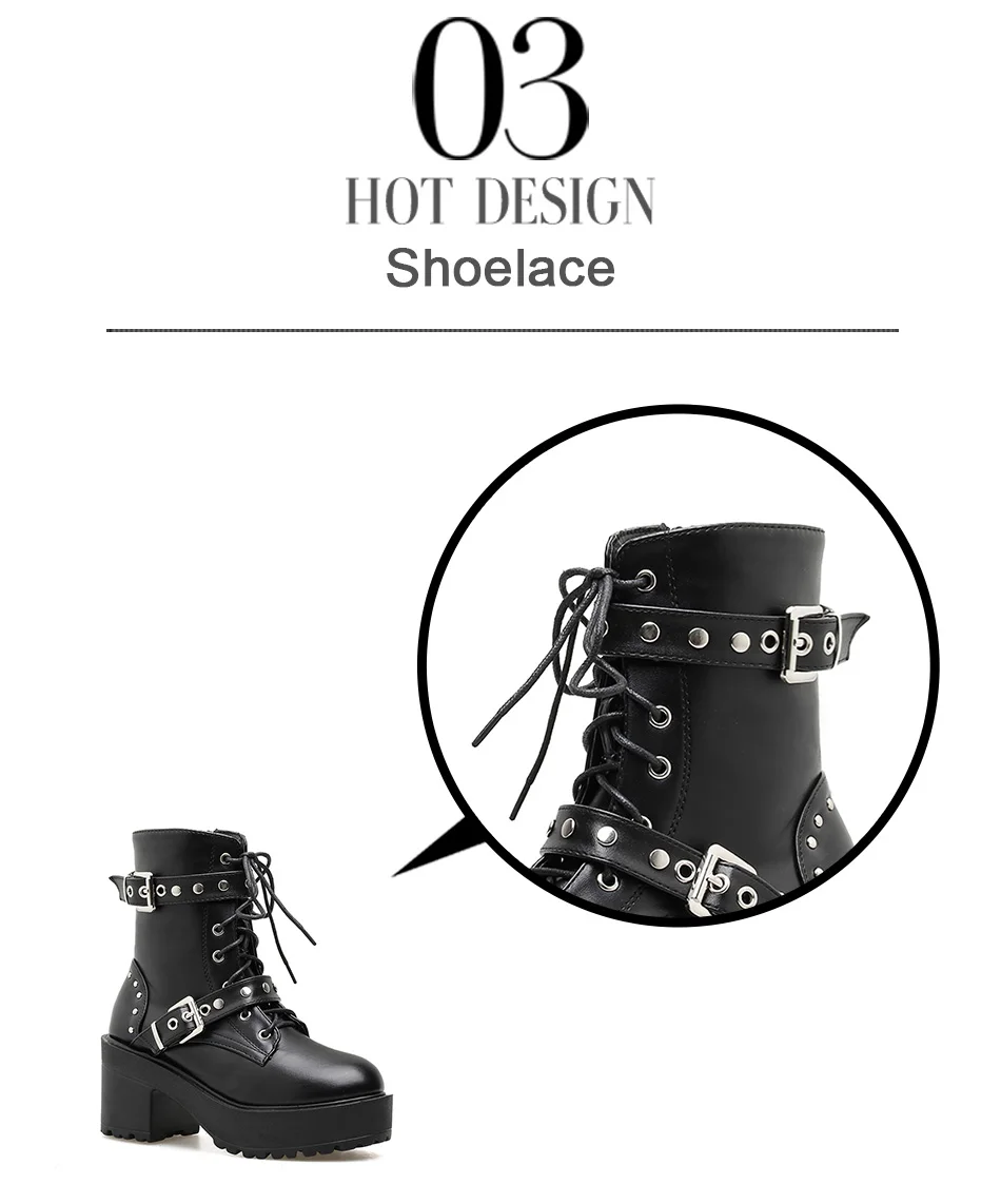 Женские кожаные ботинки Gdgydh, черные, с заклепками, на платформе, на среднем каблуке, для осени, Стильные армейские ботинки