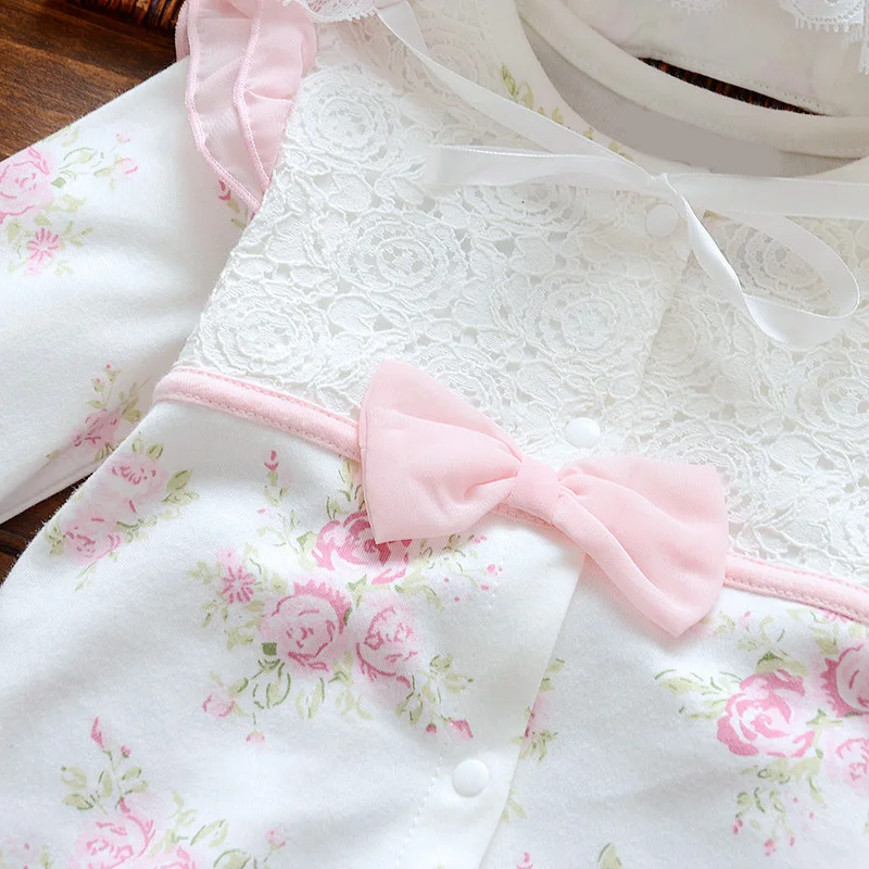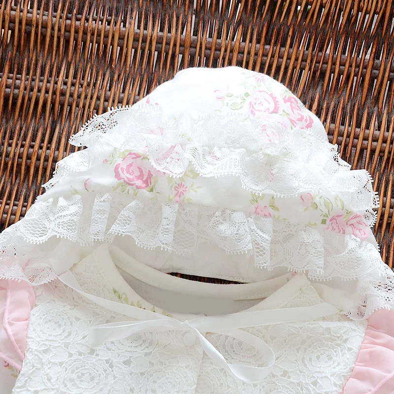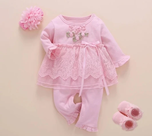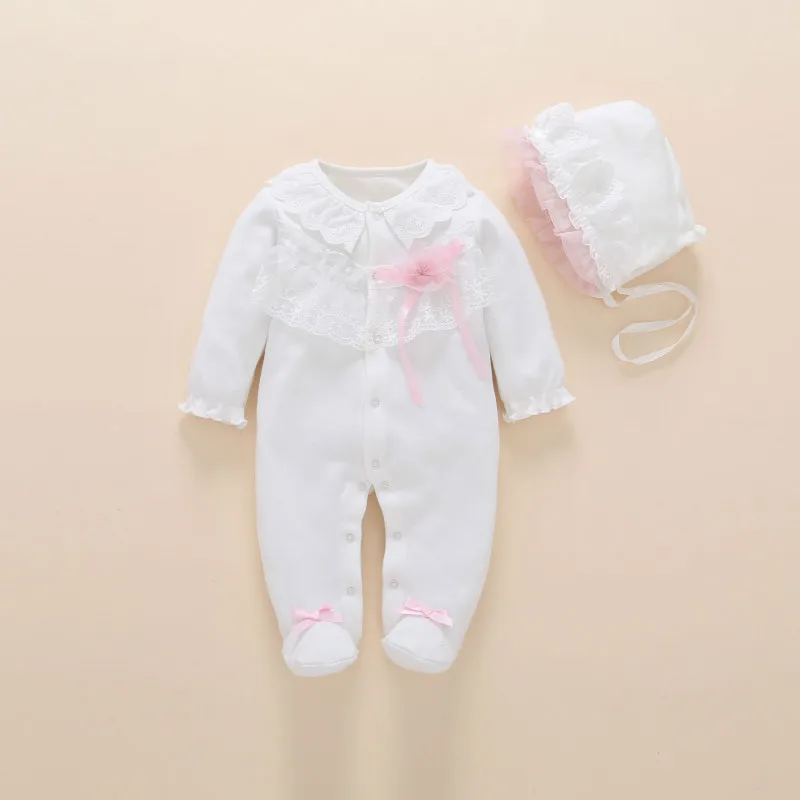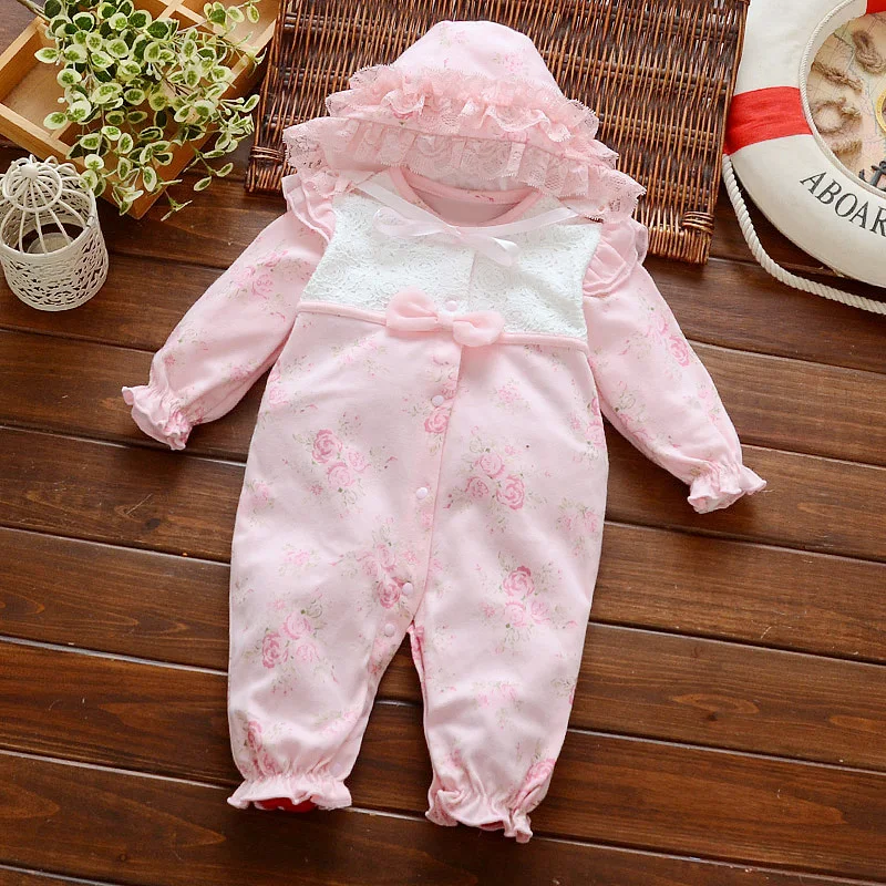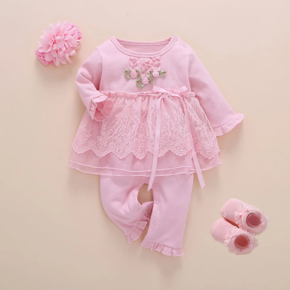 детский комбинезон для новорожденных девочек осенний хлопковый кружевной комбинезон принцессы для малышей от 0 до 3 месяцев, Детский комбинезон с носками повязка на голову детские вещи