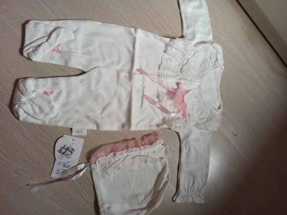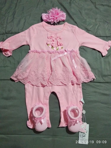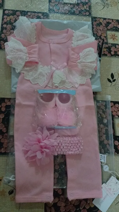 Комбинезон очень красивый, качество отличное,даже после стирки всьо отлично,только носочки и повязка очень отличается по цвету и размер заказала на 6 месяцев а подходит на 4 месяца,продавца рекомендую,товар пришел за 12 дней.