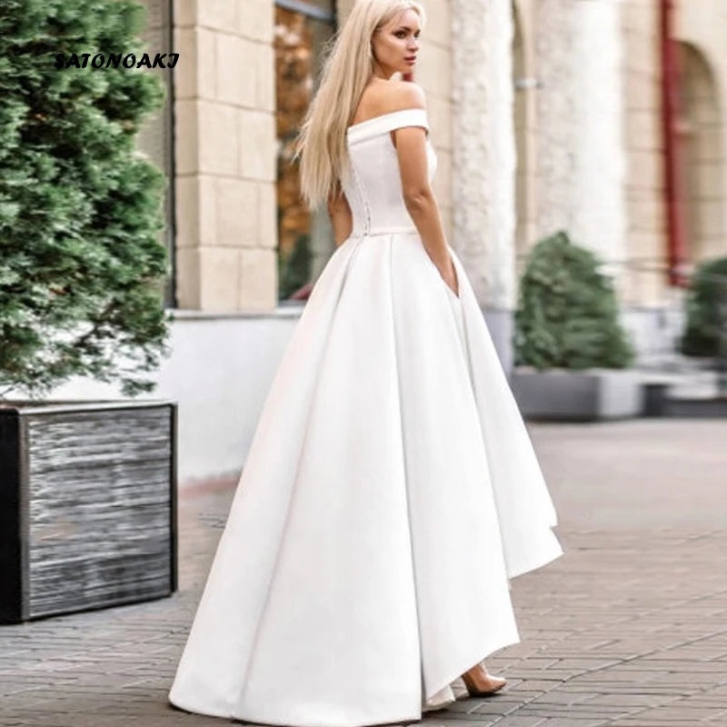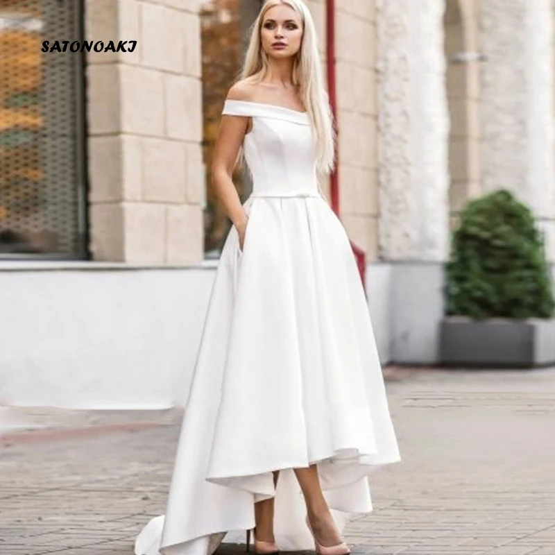 Женское атласное свадебное платье It's yiiya, белое элегантное платье невесты в стиле бохо с открытыми плечами и карманами на лето 2022