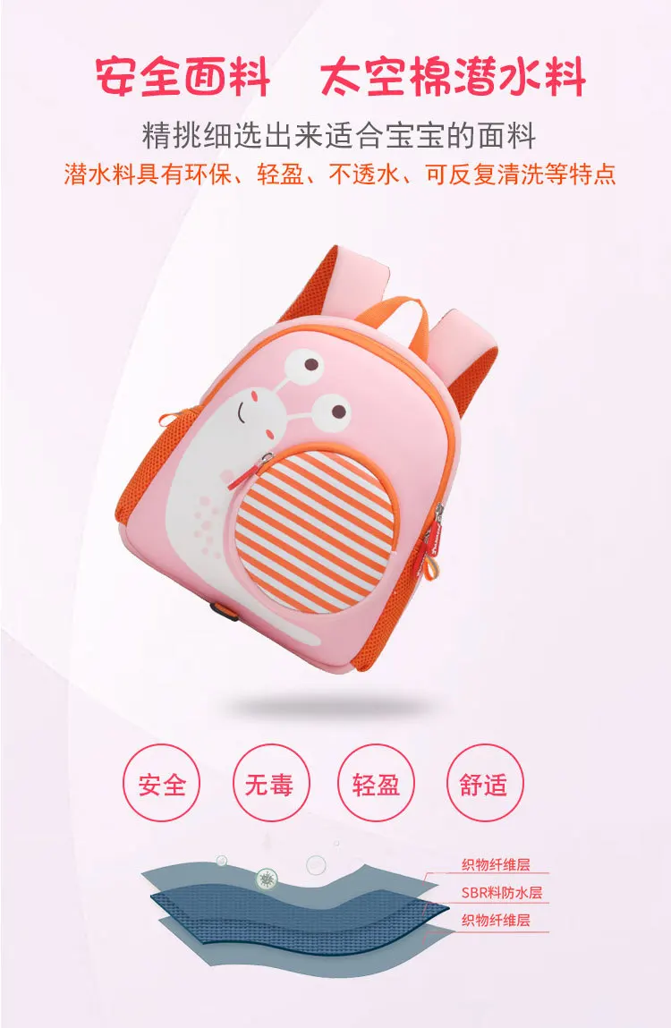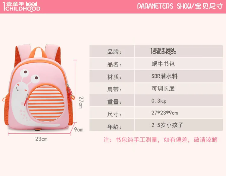 Дети Улитка мультфильм школьные сумки детский сад Анти-потеря безопасный неопрен SBR Ткань Рюкзак для детей девочек