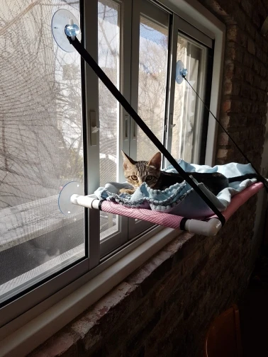 Работает так же, как описано. Надежно и безопасно удерживает, просто приклейте его к окну и дайте кошке еще одно место, чтобы потускнеть. Рекомендуется!