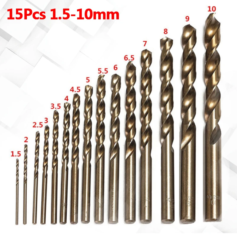 15 шт. 1,5-10 мм M35 hss-co Кобальт сверла по металлу весь первый металлические электрические инструменты для Нержавеющаясталь сверления отверстий