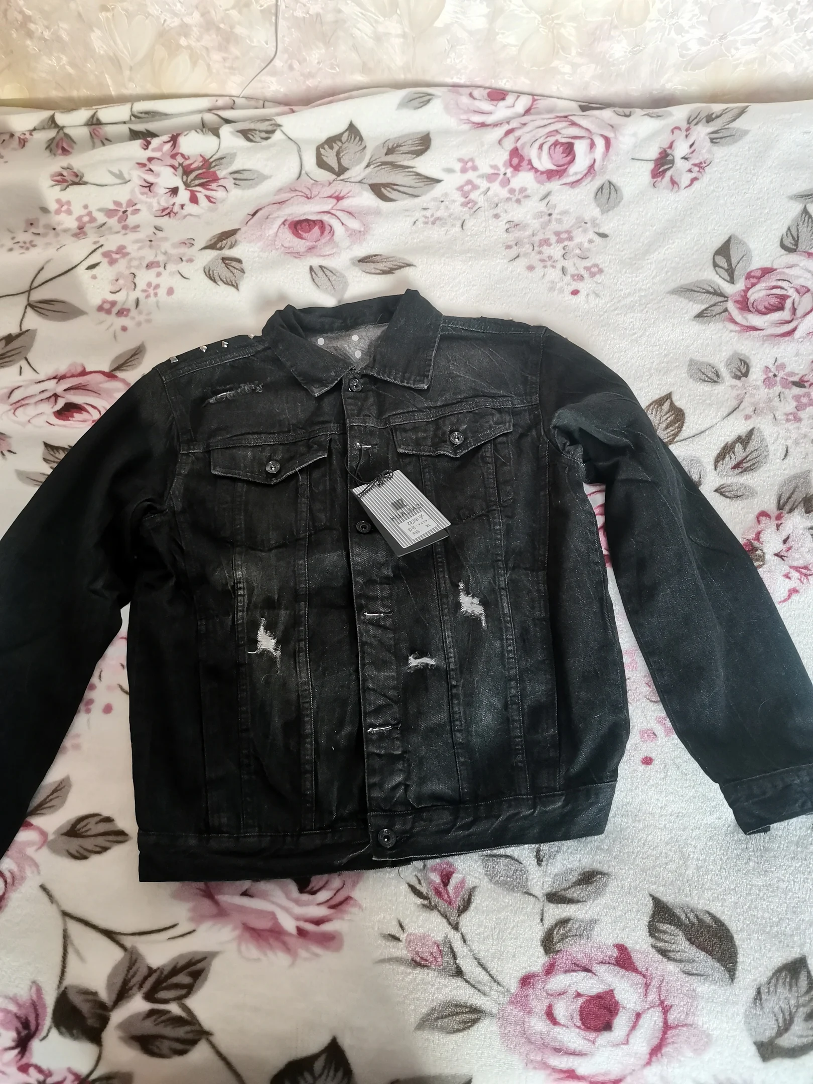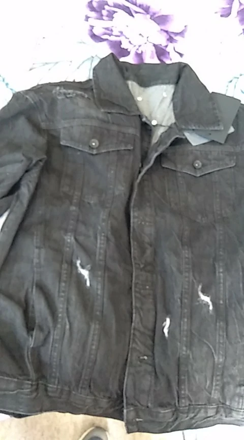 Крутая куртка!!! Очень понравилась! Купила для себя, только меньшего размера. На фото спереди нет рванных потёртостей, на фото куртка целая. На моей есть на правым карманом , и просто потёртости в двух местах. В общем, довольна !!!