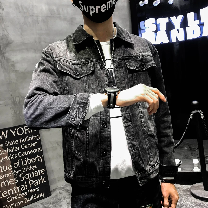 Мужская джинсовая куртка YASUGUOJI, черная облегающая куртка в стиле панк, с вышивкой волка, 2021