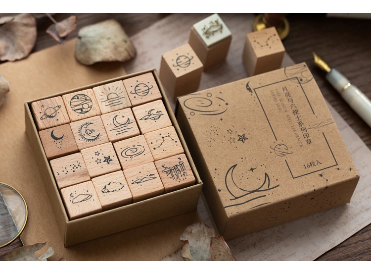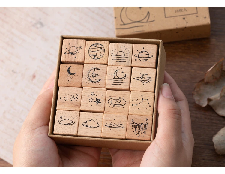 Винтажные штампы для скрапбукинга, деревянные, 16 шт.лот