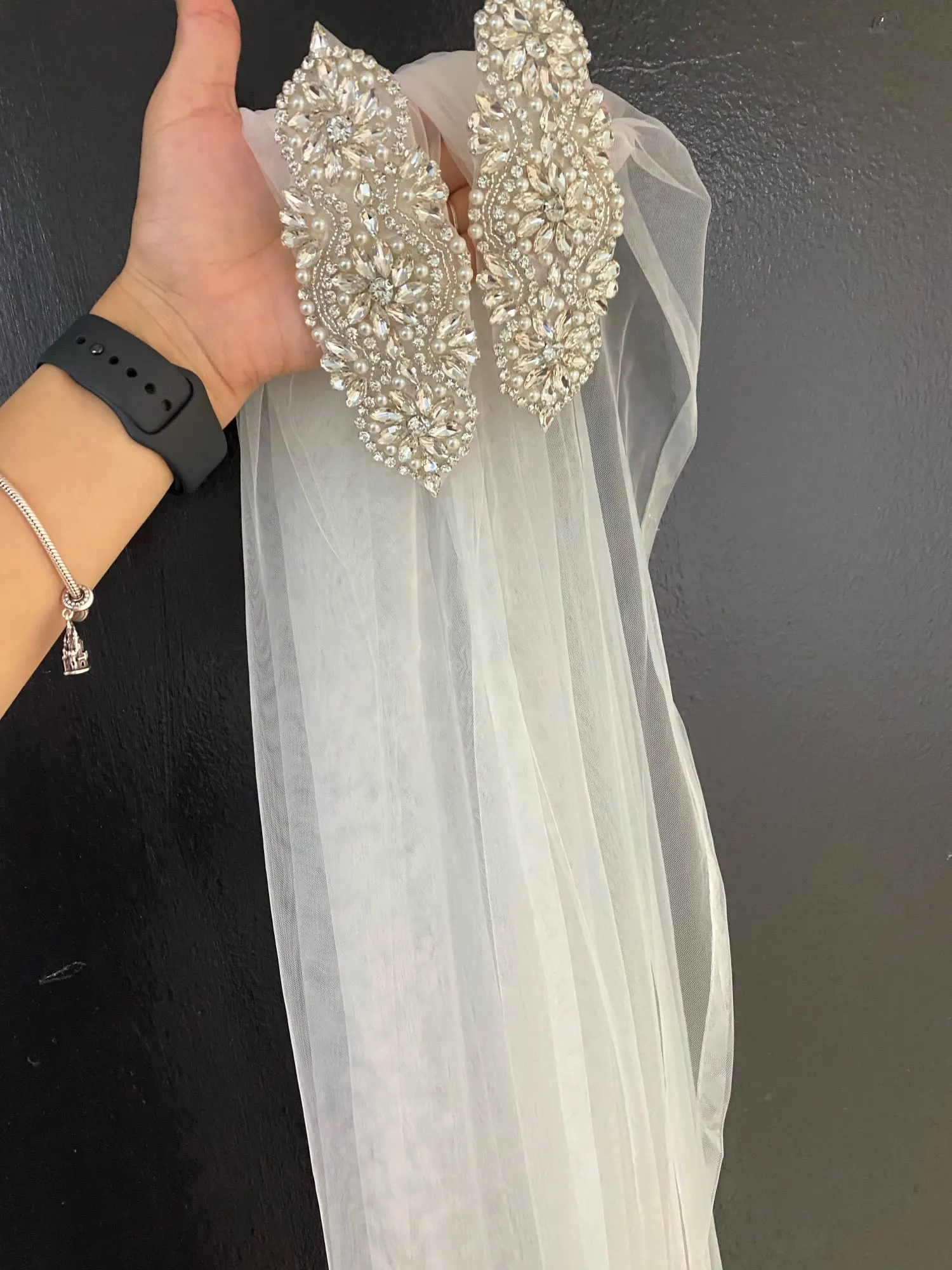 Белыйцвет слоновой кости, свадебные аксессуары, стразы, аппликация, фата для невесты, собор, тюль, длинный плащ, накидка, шаль, накидка-Фата