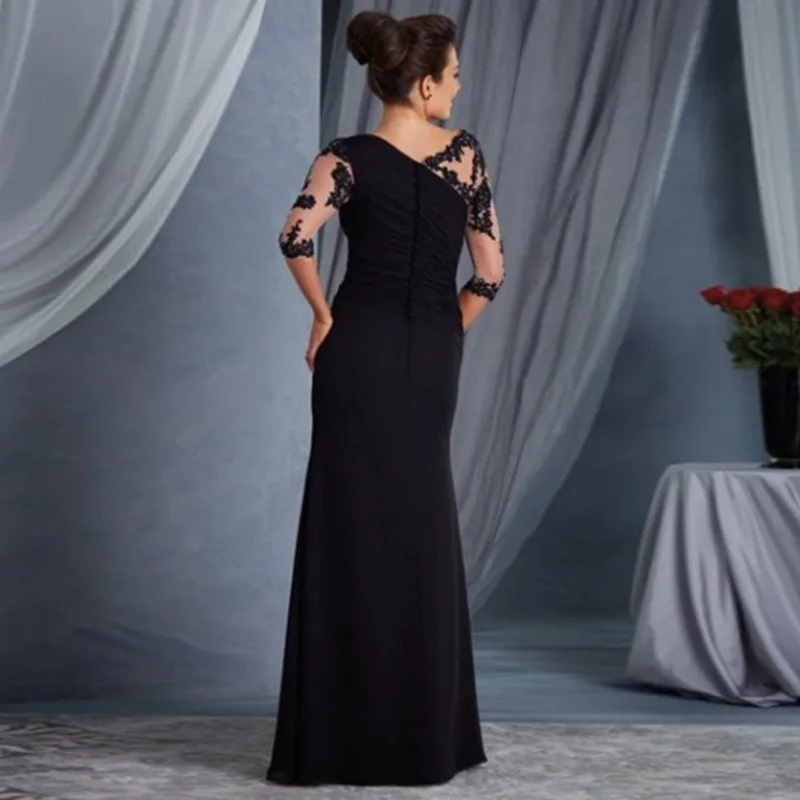 Черные вечерние платья для матери невесты с рукавом 34, шифоновые п...