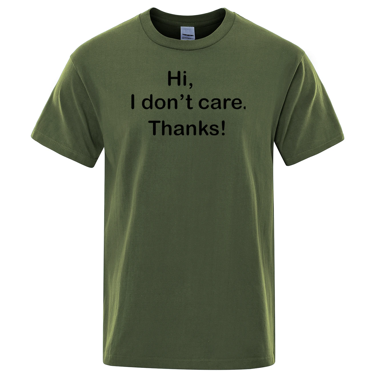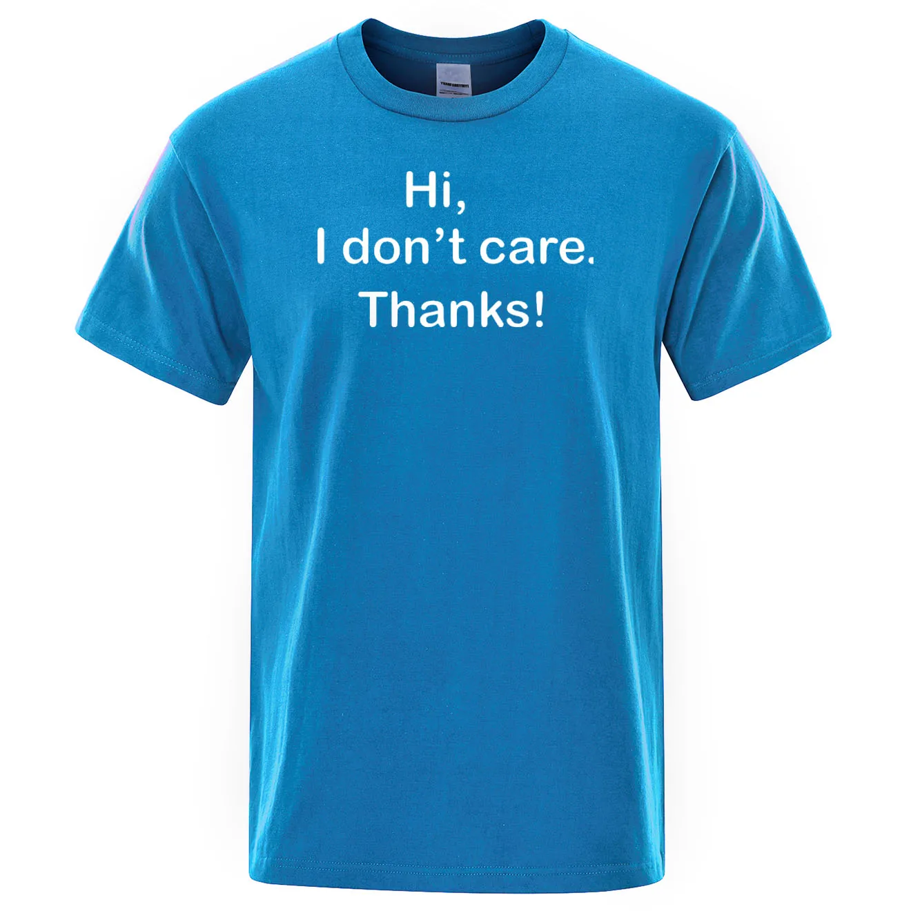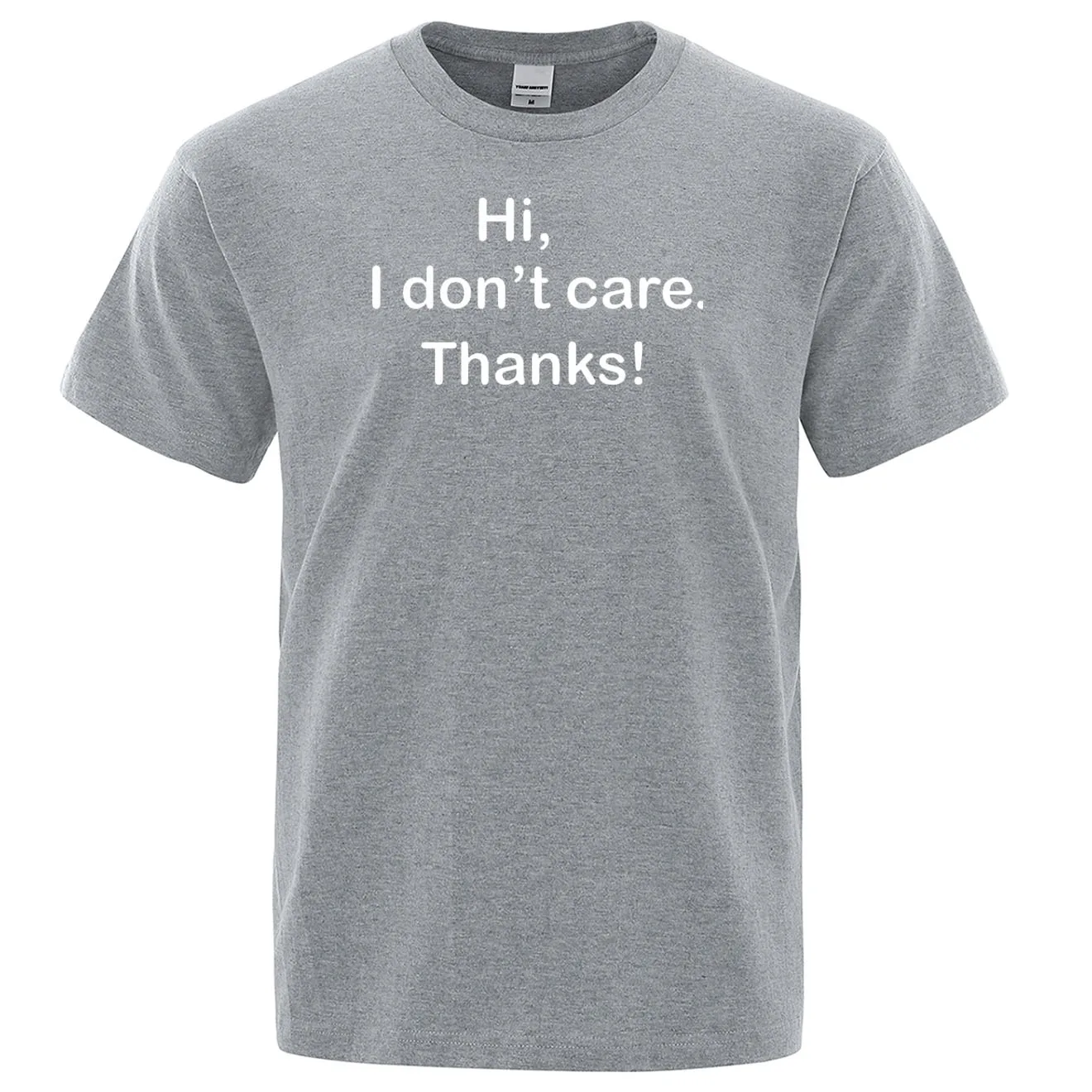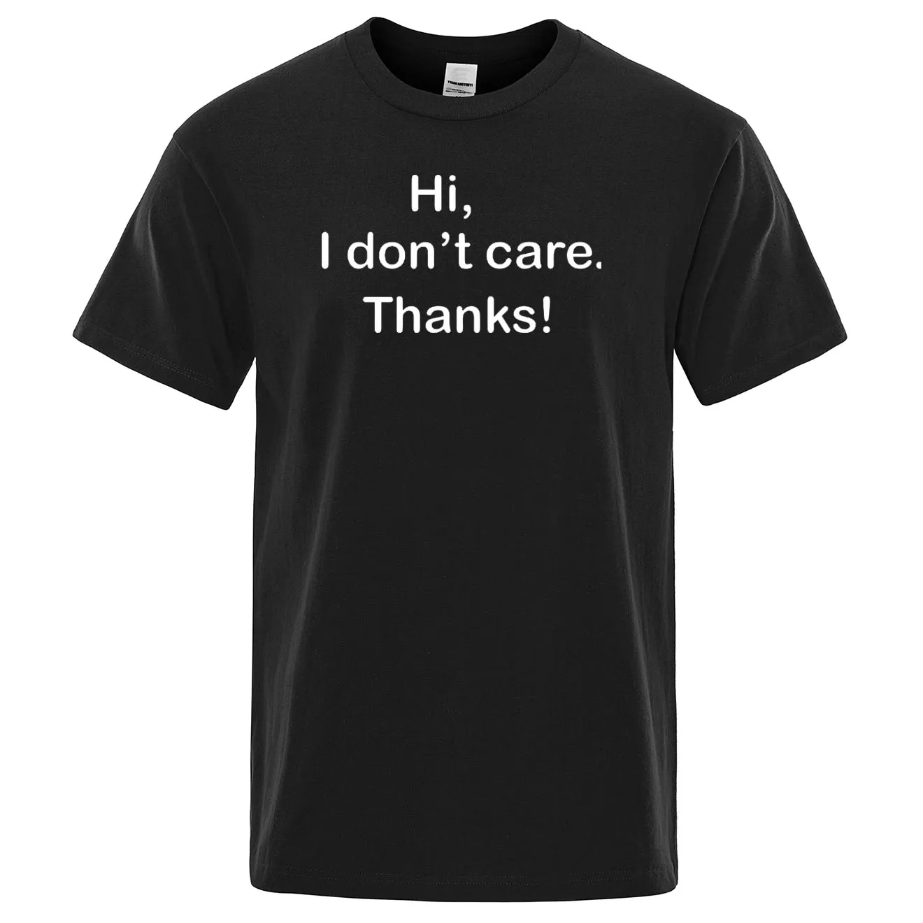 Футболка мужская хлопковая с надписью Hi I't Care Thank, Повседневная рубашка с принтом, свободного покроя, лето 2022