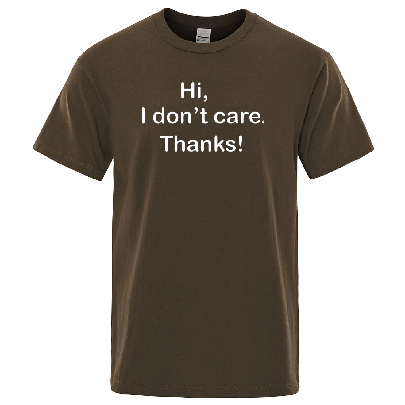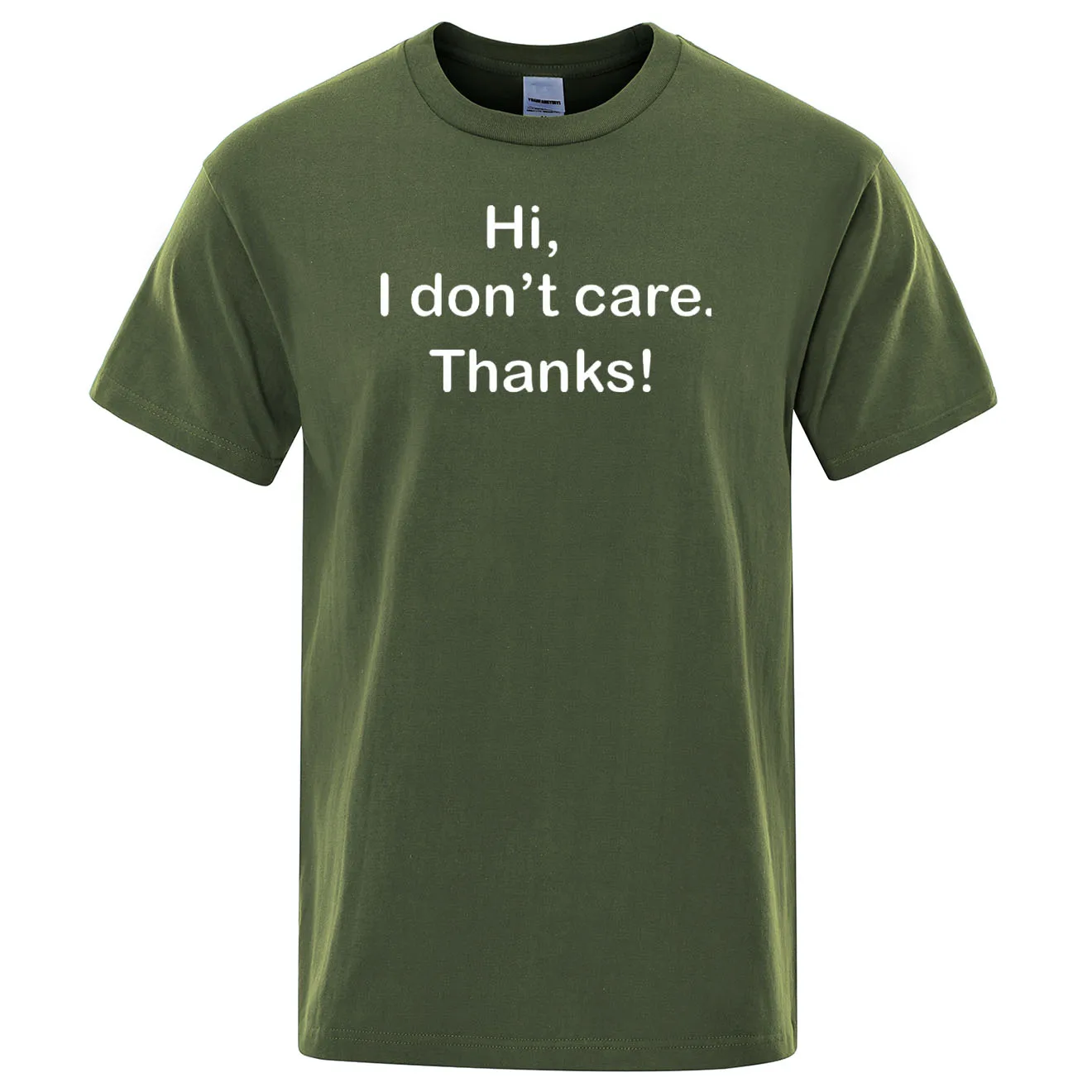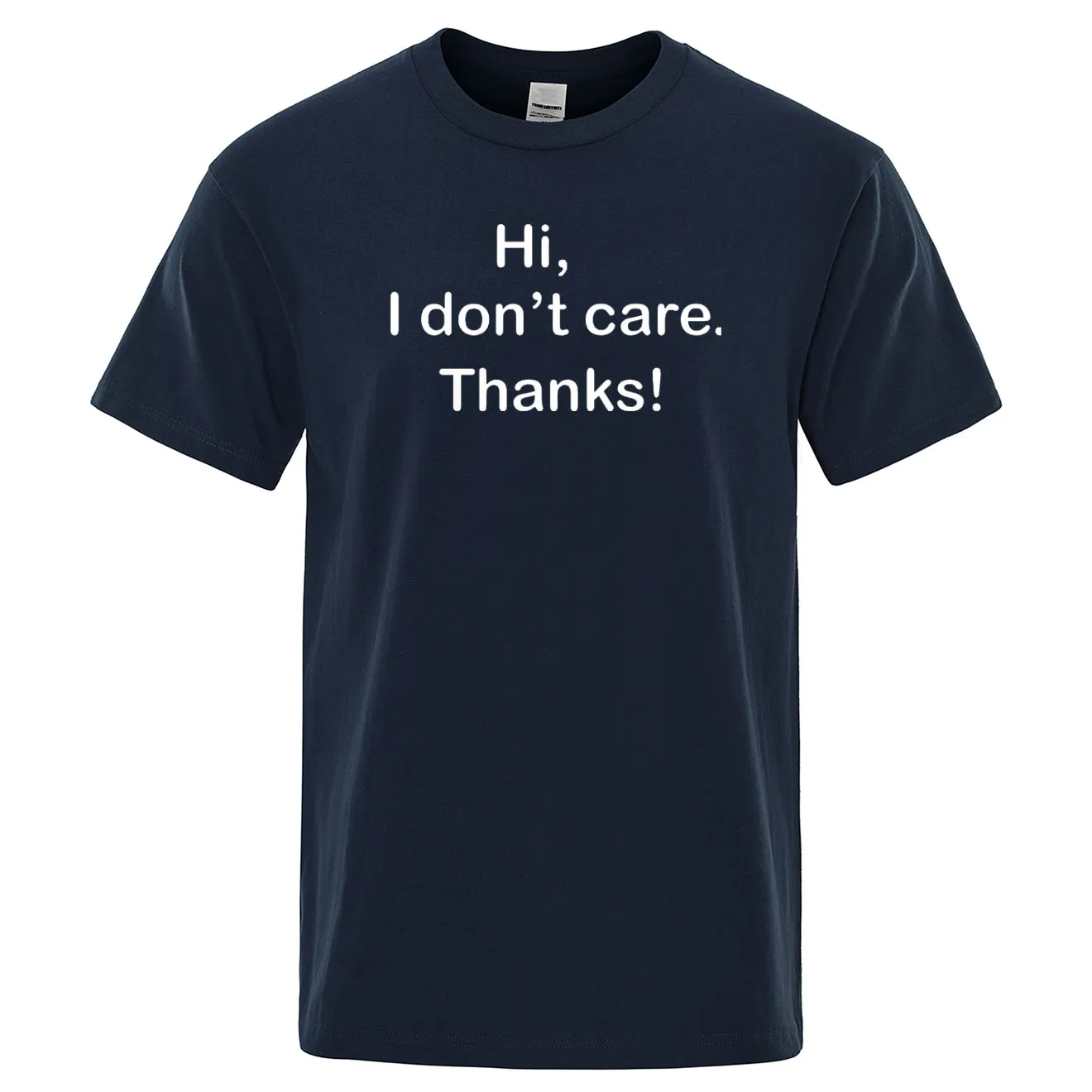 Футболка мужская хлопковая с надписью Hi I't Care Thank, Повседневная рубашка с принтом, свободного покроя, лето 2022