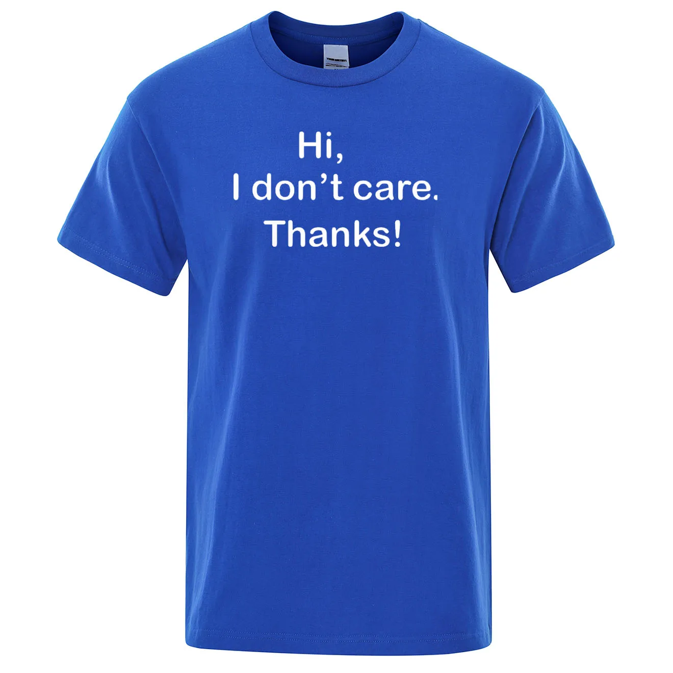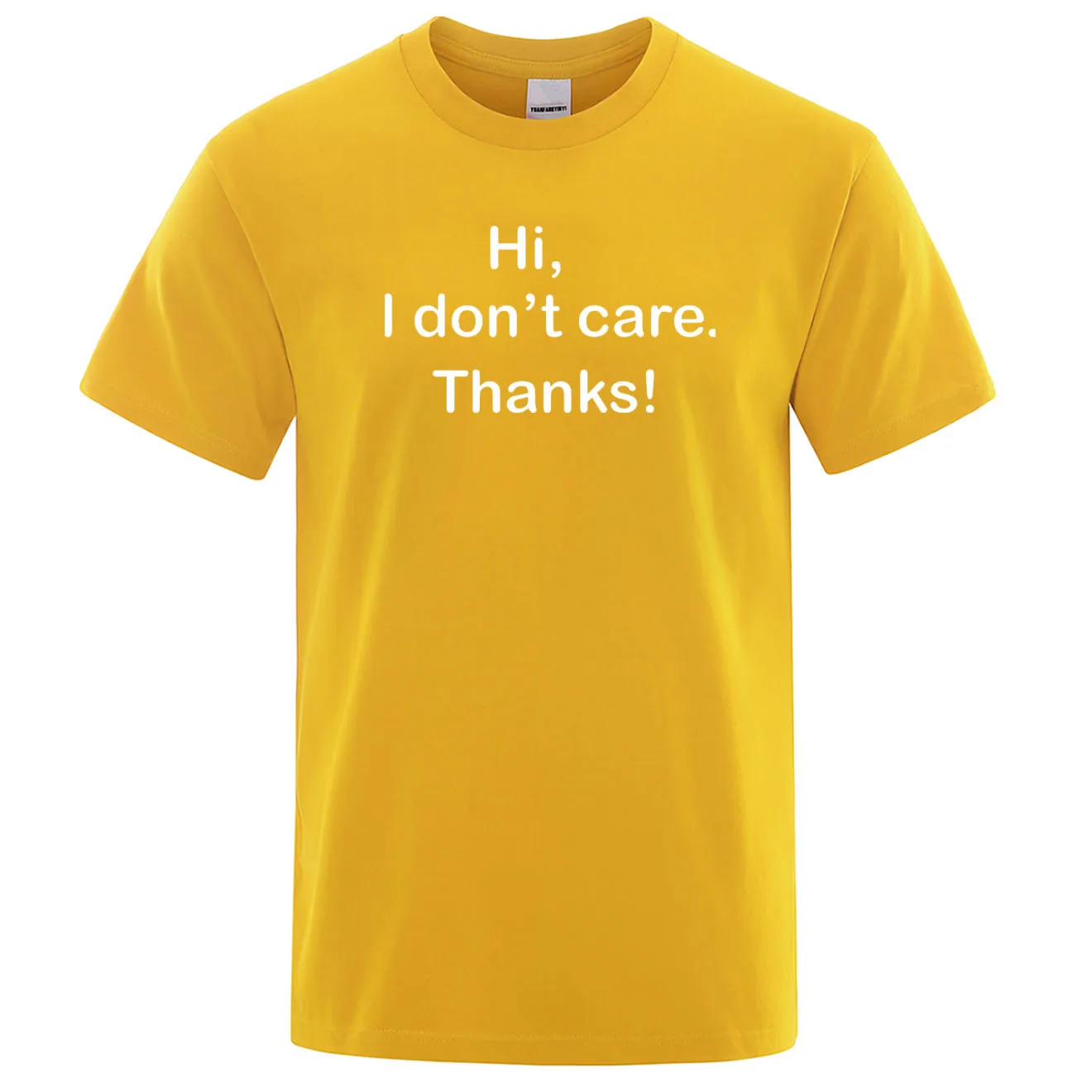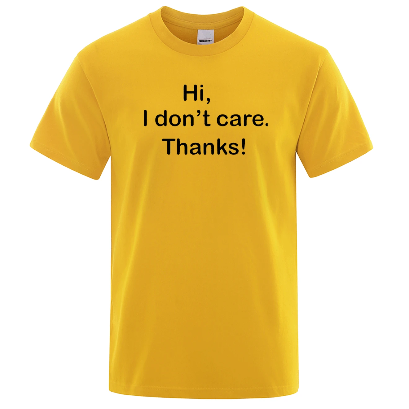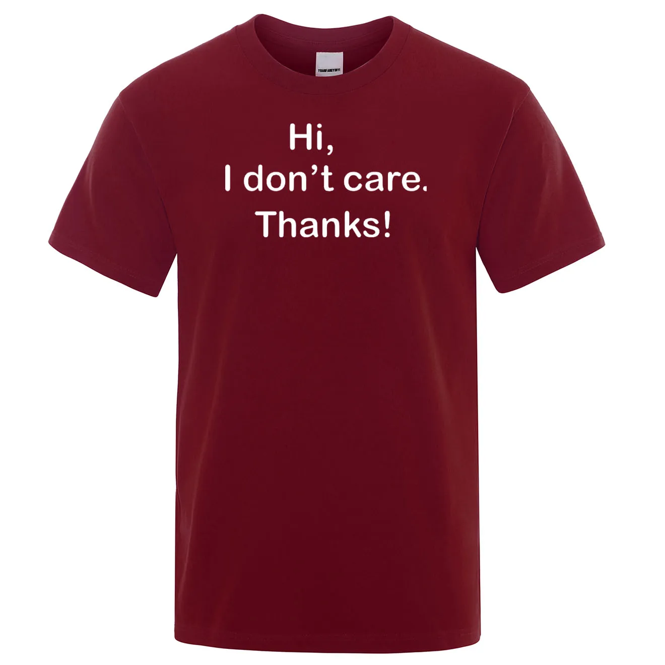 Футболка мужская хлопковая с надписью Hi I't Care Thank, Повседневная рубашка с принтом, свободного покроя, лето 2022