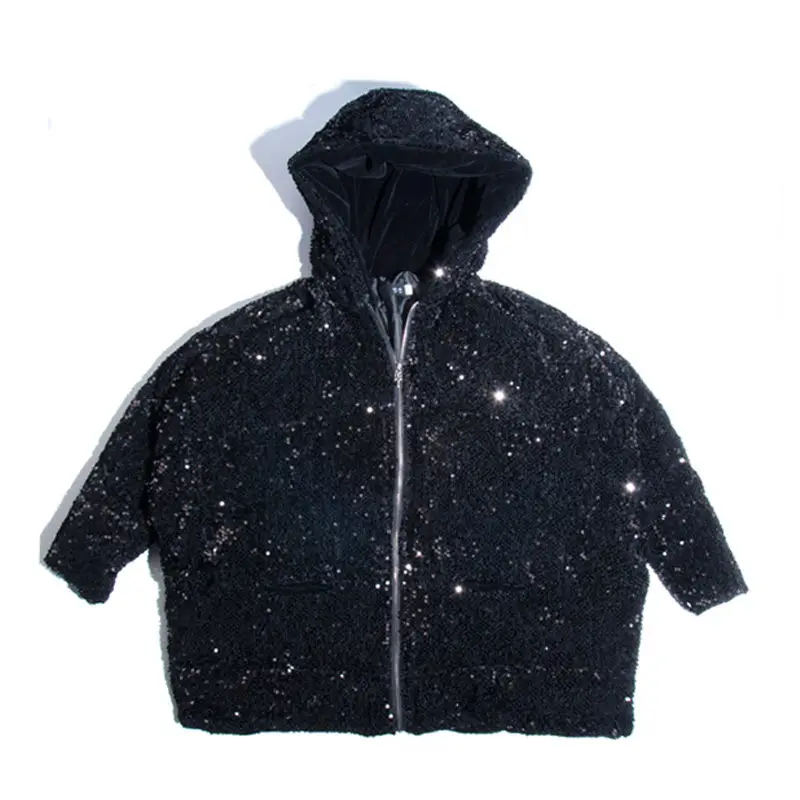 Куртка женская зимняя с пайетками, с капюшоном, свободная, теплая, хлопковая, f1734, размера плюс