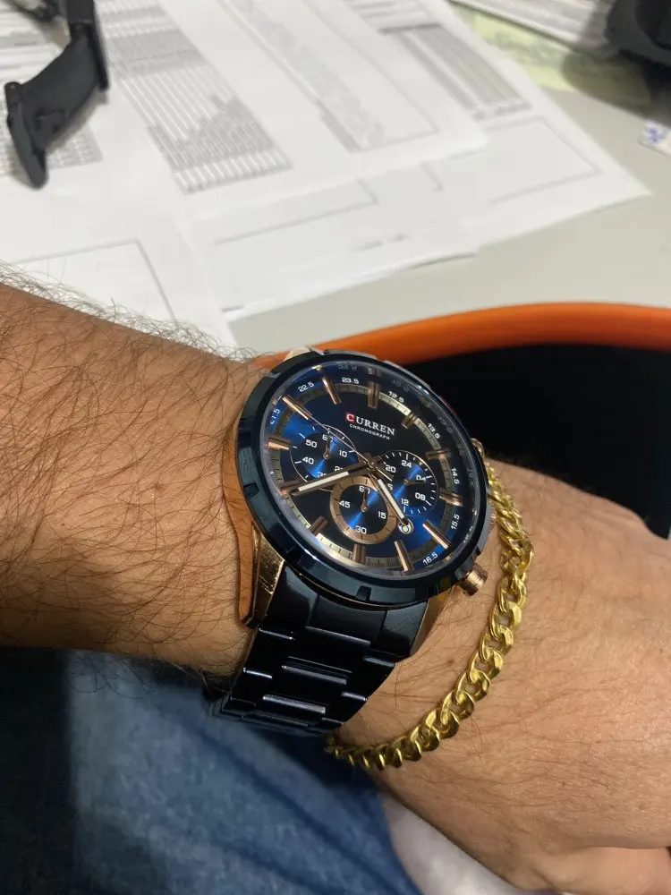 Curren Мужские часы с синим циферблатом из нержавеющей стали, мужские деловые часы с ремешком, водонепроницаемые Роскошные мужские наручные часы для мужчин