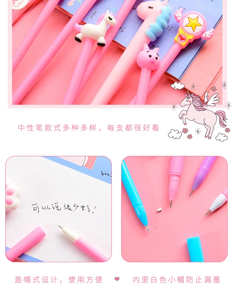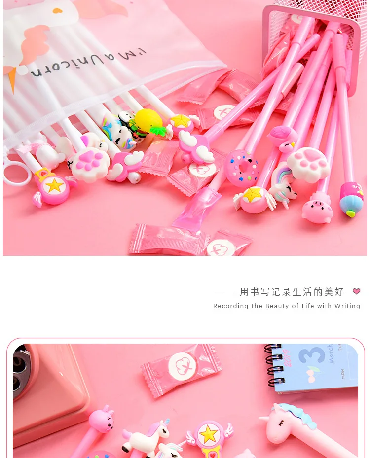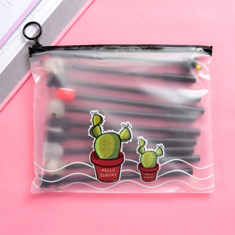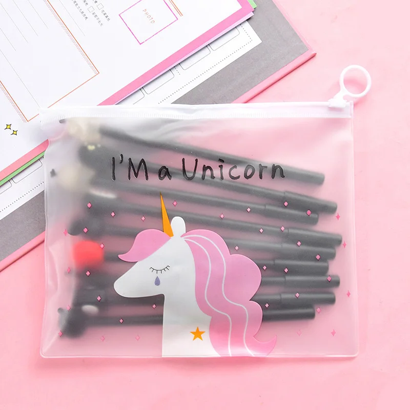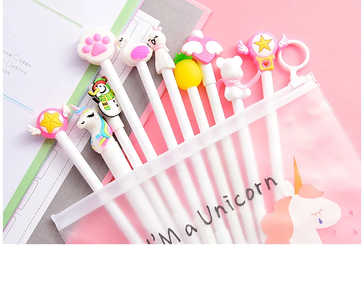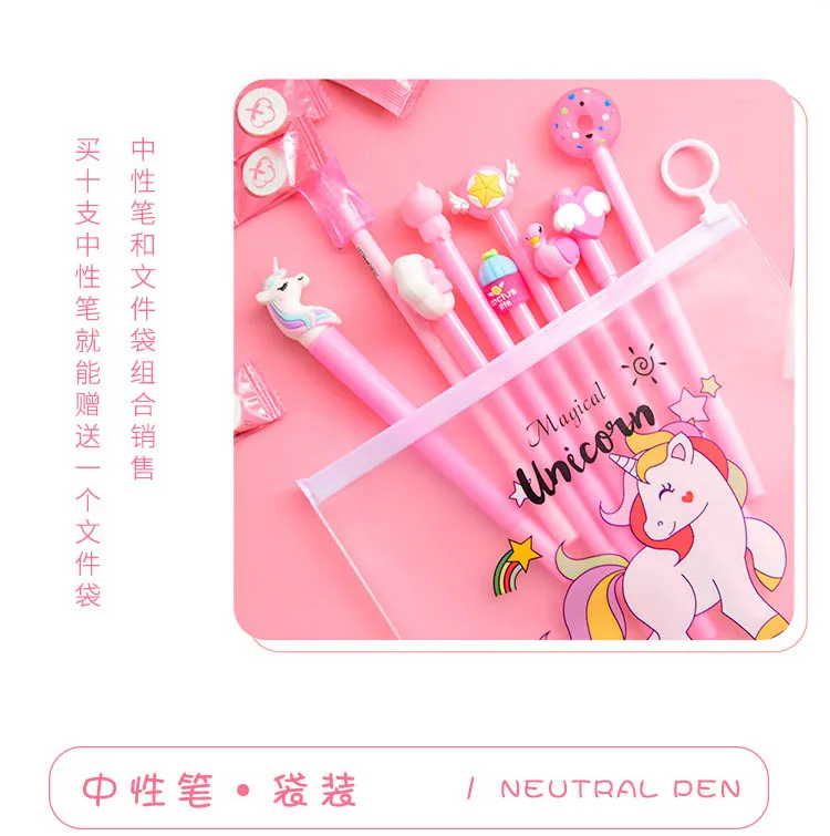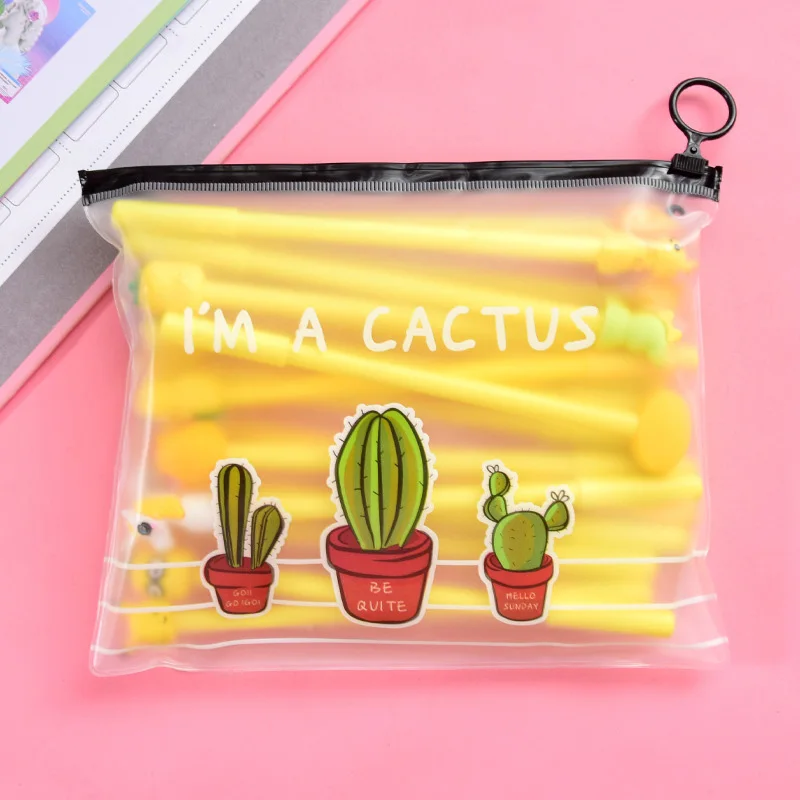 10 шт. ручки + 1 сумка милый кактус кавайные ручки Единорог гелевые ручки для девочек Подарки школьные канцелярские принадлежности корейские канцелярские принадлежности