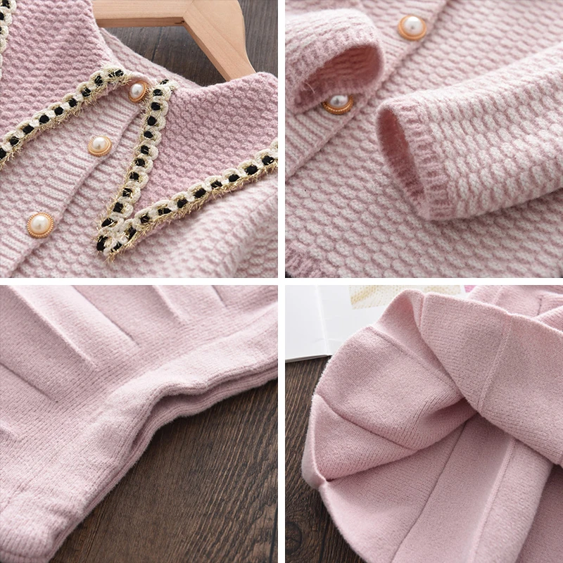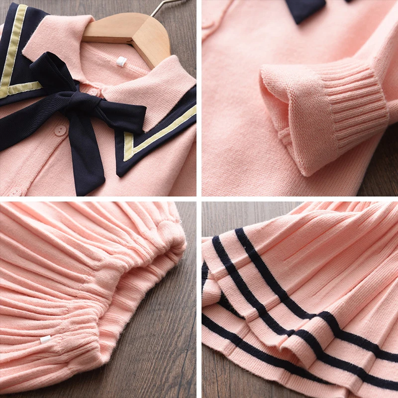 MenoeaДетская осенняя леопардовая одежда детское зимнее платье-свитер шерстяная одежда с длинными рукавами и рисунком кота для девочек вязаные платья с бантом