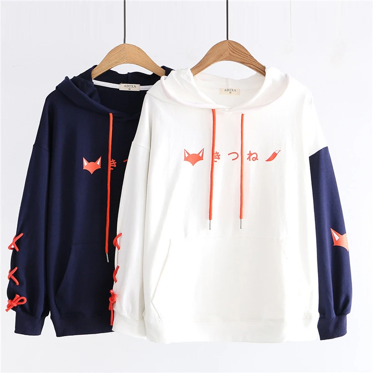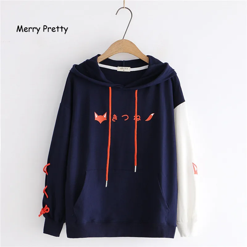 Толстовка женская с капюшоном Merry Pretty, хлопковая толстовка с принтом лисы на шнуровке, утепленная флисовая толстовка в стиле Харадзюку, пуловеры