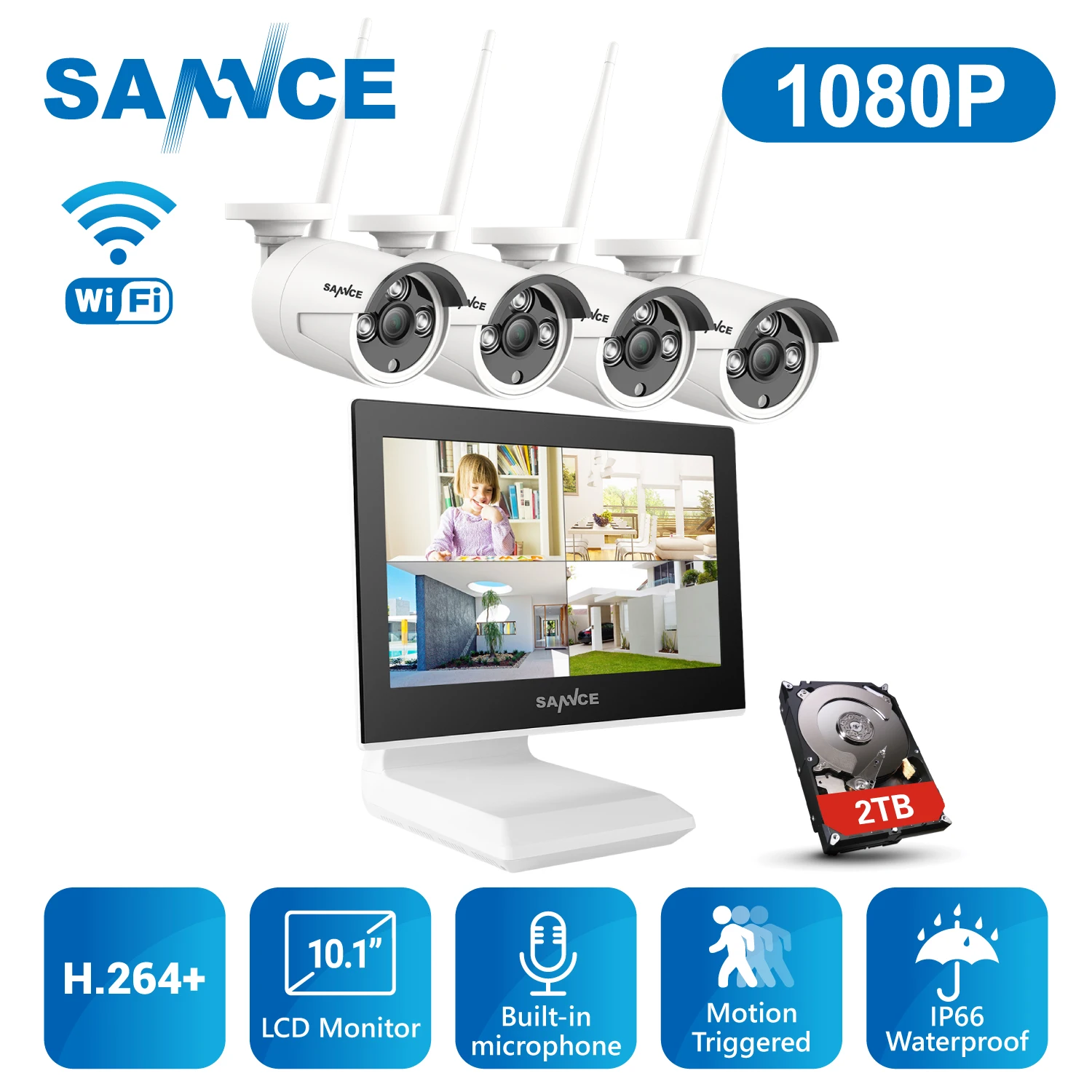 Беспроводная система видеонаблюдения SANNCE, 1080p HD, ЖК-экран 10,1 дюйма, 4 уличные Wi-Fi IP-камеры 2 Мп, комплект s