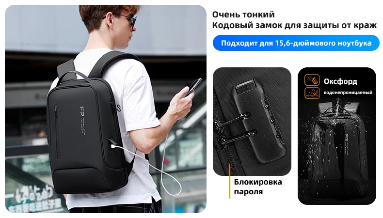 Fenruien многофункциональный мужской рюкзак с usb-зарядкой, водонепроницаемый рюкзак школьный 15,6 дюймов , сумка для ноутбука, деловая Вместительная дорожная сумка
