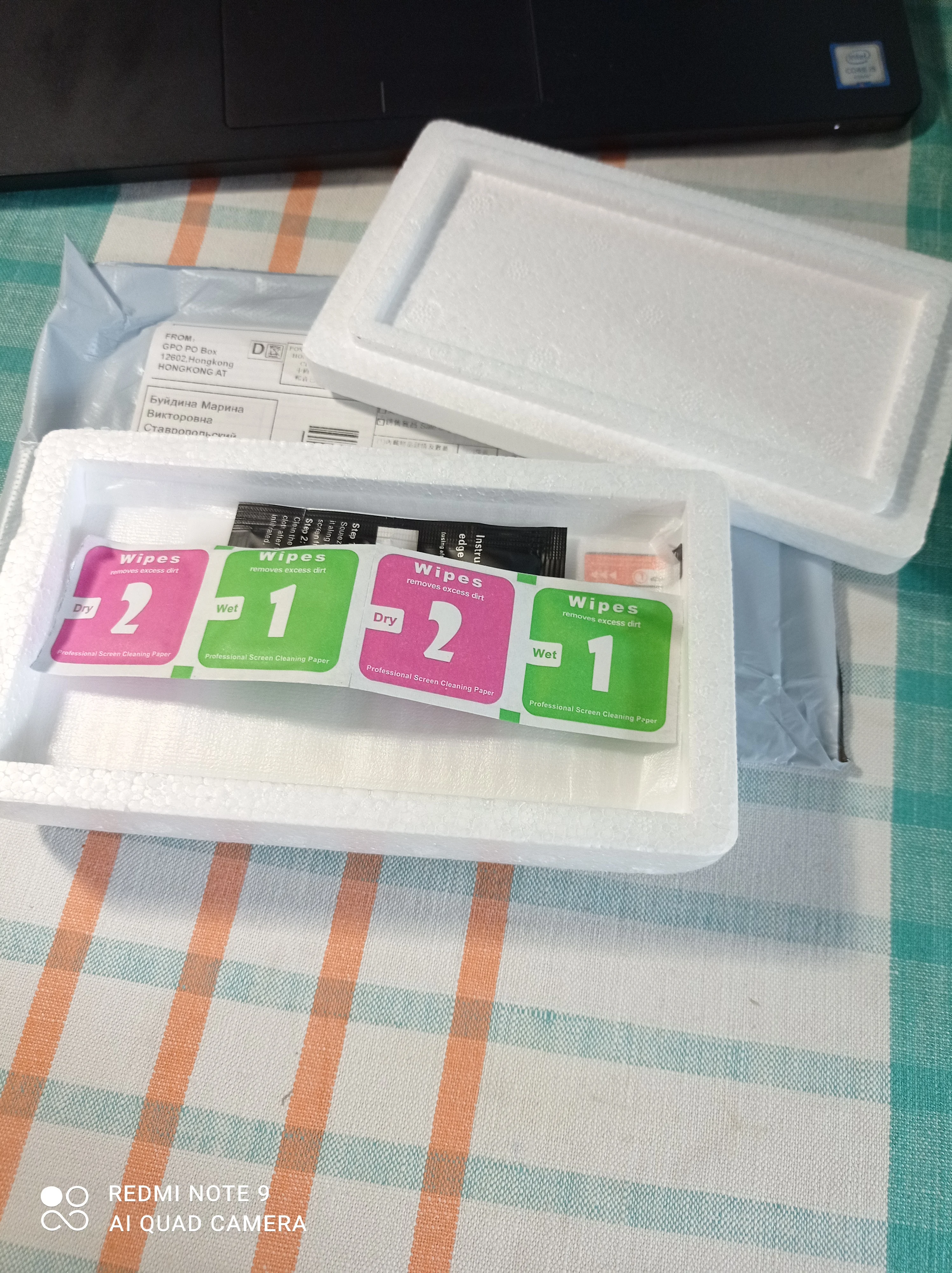 До Белорусии посылка дошла за 24 дня,продавец общительный,посылку отправил быстро,скидок не делал. В комплекте было стекло на экран,стекло на задние камеры,4 сплфетки и какпя то жидкость в маленьком тюбике. Все было упаковано в пенопластовую коробку и пакет,при пересылке повредили коробку,но на товар это не повлияло. На задние камеры пленка легла идеально,хоть без инструкции не сразу поняли какой сороной ее клеить,а вот на сам экран пленка легла не очень хорошо,по бокам она плотно не прилегает,видно нужно ее делать чуть меньшего размера,а когда одели оригинальный бампер,то он вообще может это стекло поднять(( Модель нашего телефона Redmi Note 9 Pro Так что я осталась не очень довольна((
