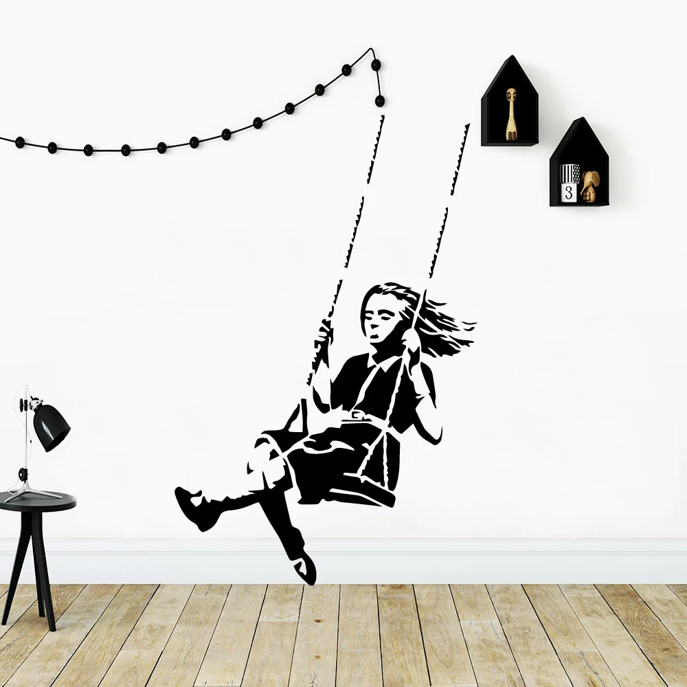 3D Banksy swing girl домашний Декор современный акриловый Декор виниловый Фотофон