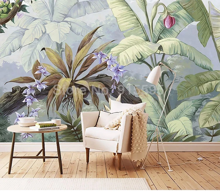 Пользовательские обои тропический лес Банановый Лист ручная роспись художественная настенная живопись гостиная спальня роспись Papel De Parede 3D