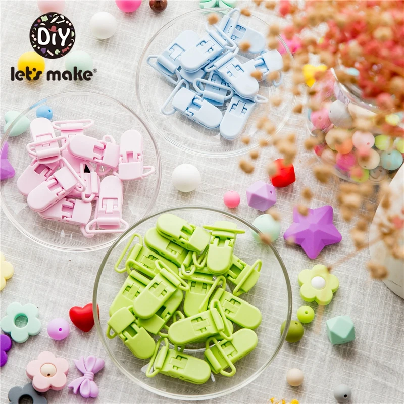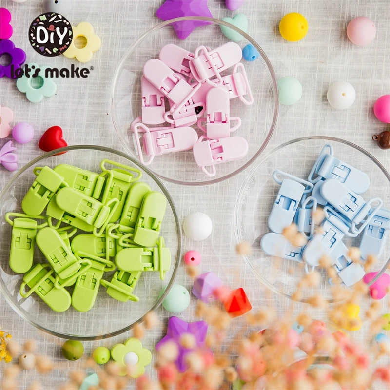 Цепочка-Соска для новорожденных Let's Make, 50 шт., пластиковая Клипса-соска, на выбор, бусины для прорезывания зубов, подтяжки, круглые бусины