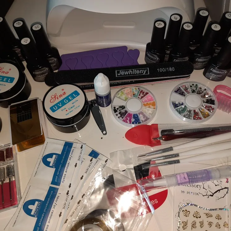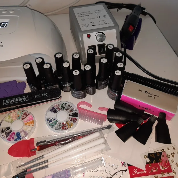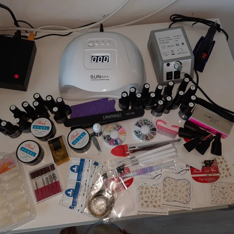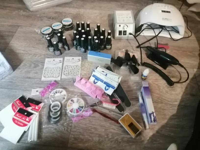 Хороший набор за такие деньги. Пришел в полной комплектации, помяты пилочки, продавец в подарок положил две маленькие баночки цветного геля. Лампа и фрезер в рабочем состоянии. Фрезы лучше докупить отдельно.