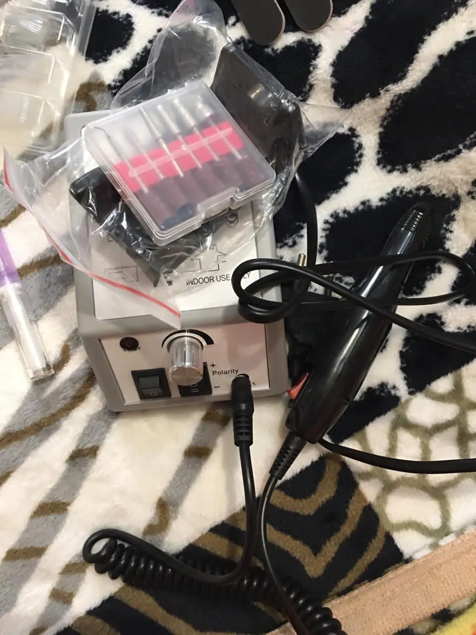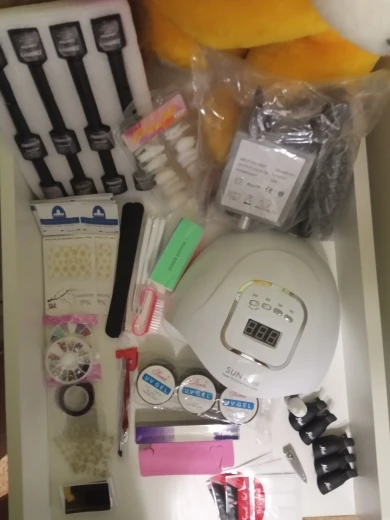 Доставляется через полтора месяца. Один лак для ногтей проливается. Но ничего такого, пока все выглядит хорошо. Лампа выглядит действительно высокого качества. Машина для сверления ногтей также находится в хорошем состоянии и выглядит мощной.