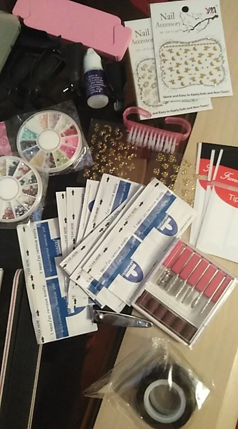заказала 11.11 пришёл 19.11 попробовала сделать два ногтя(указательный был сломан, его наращивала, со среднего пальца сняла старое покрытие и нанесла новое) делала первый раз в жизни, до этого только пару раз красила обычным лаком, получилось немного не аккуратно, но думаю в будущем научусь, насадки на фрезер(вроде так называется) лучше купить дополнительные, потому что это ни о чём, пилочки и бафик тоже лучше купить дополнительные, быстро стираются, а так набор очень понравился, для меня, как для новичка это самое то