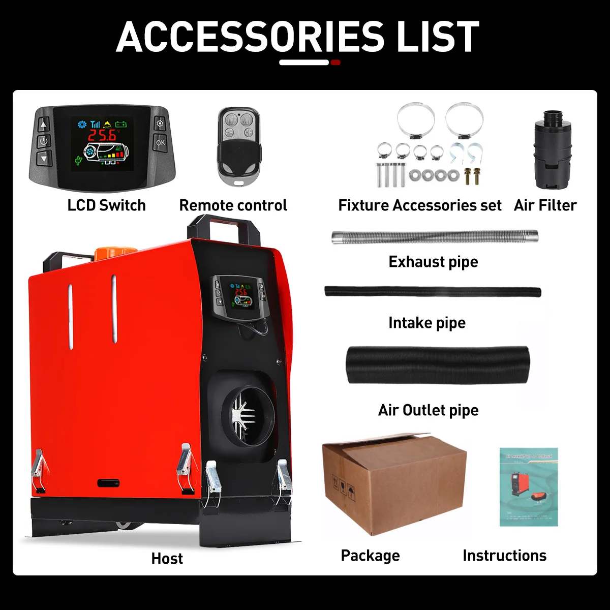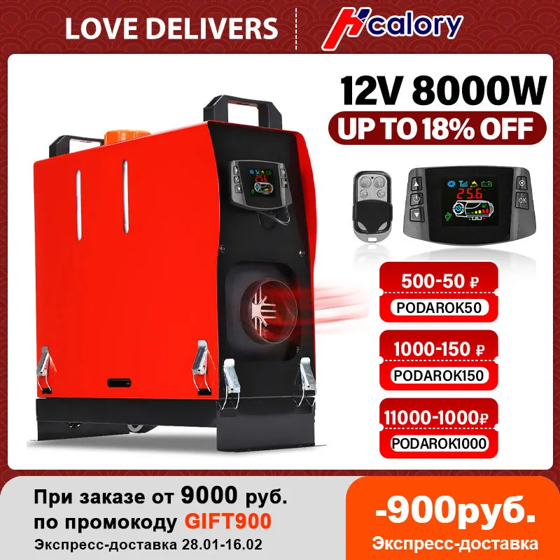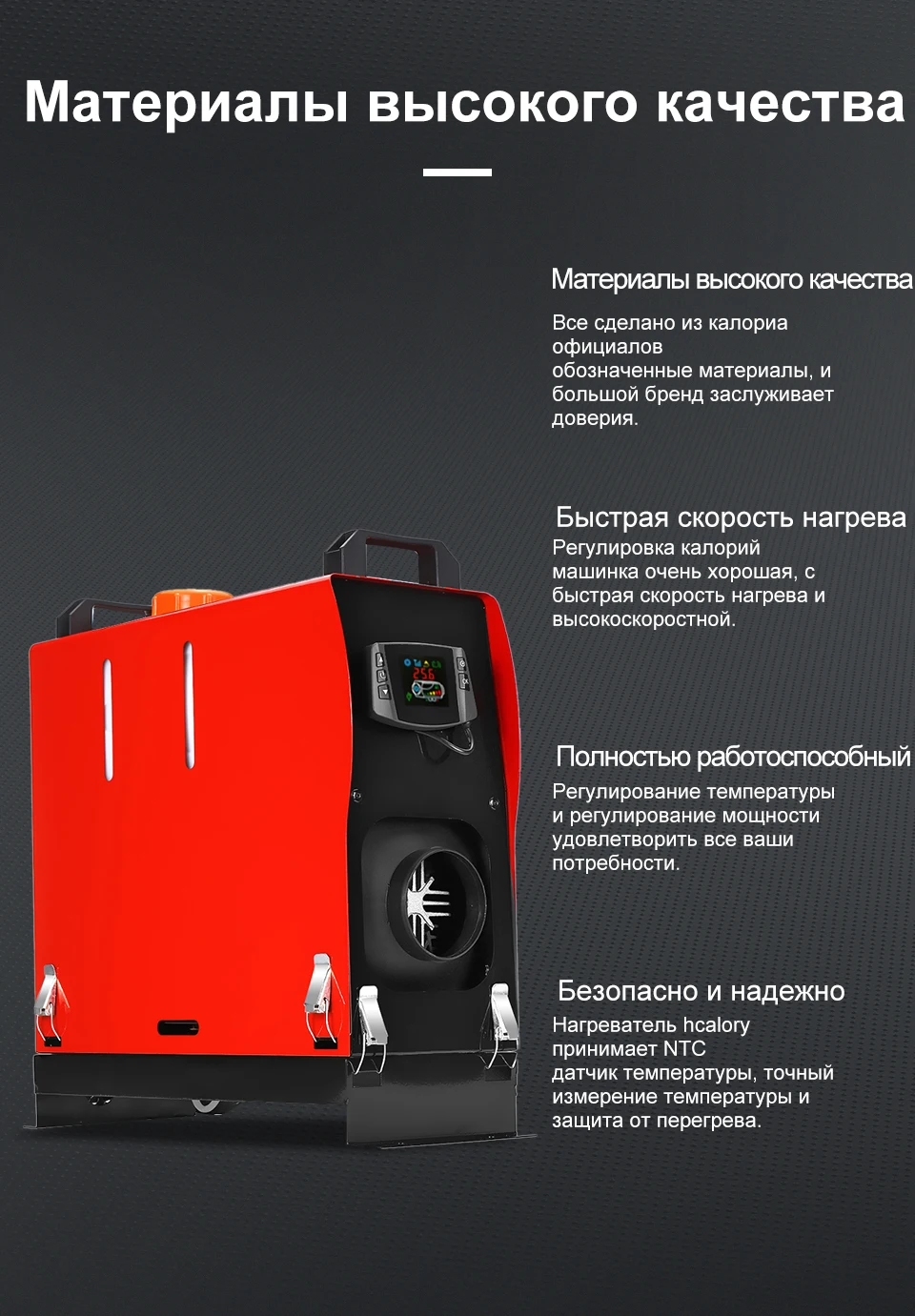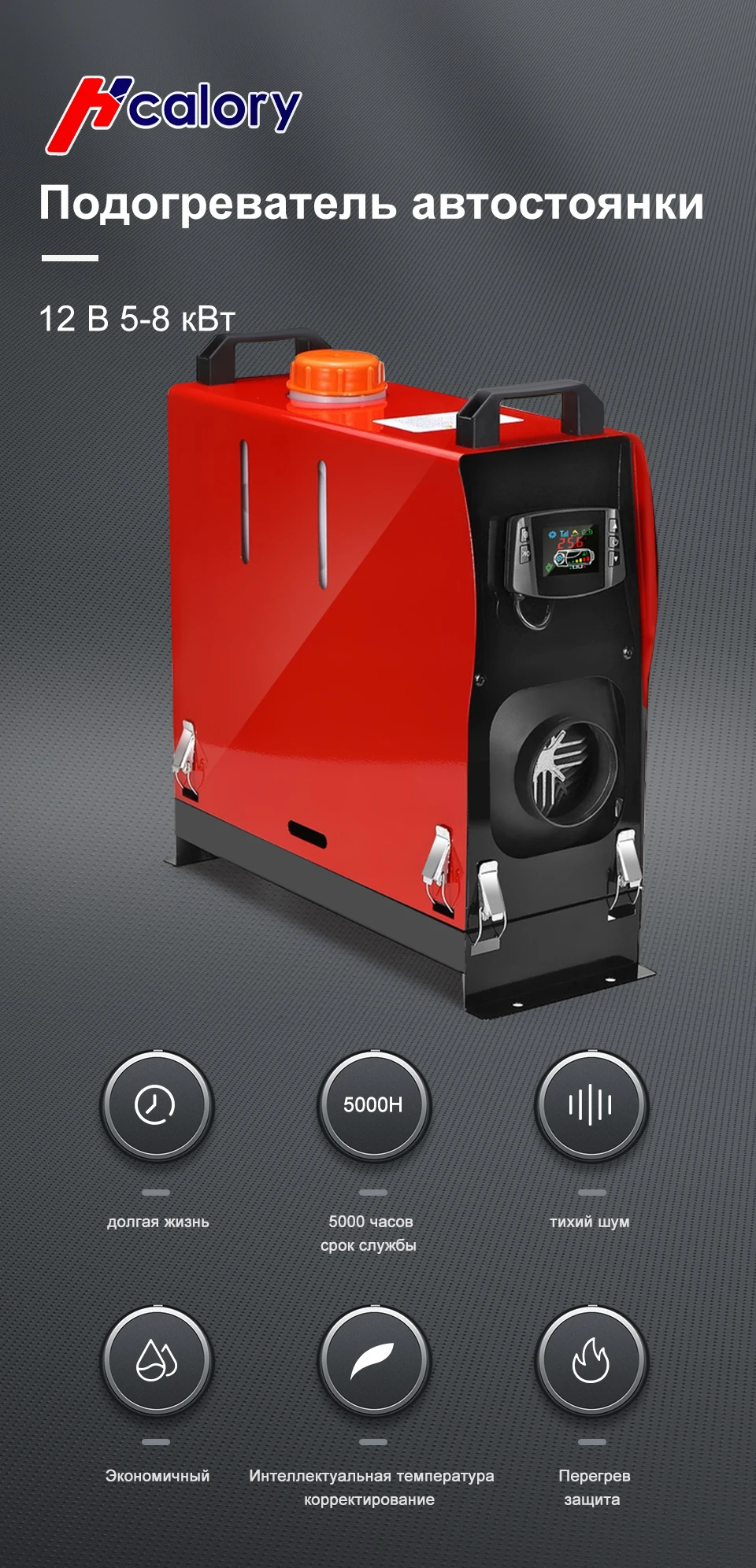 Воздушный дизельный Обогреватель Hcalory, 1-8 кВт, красный, 8 кВт, 12 В, автомобильный обогреватель с одним отверстием для грузовиков, домов на колесах, лодок, автобусов, ЖК-переключатель