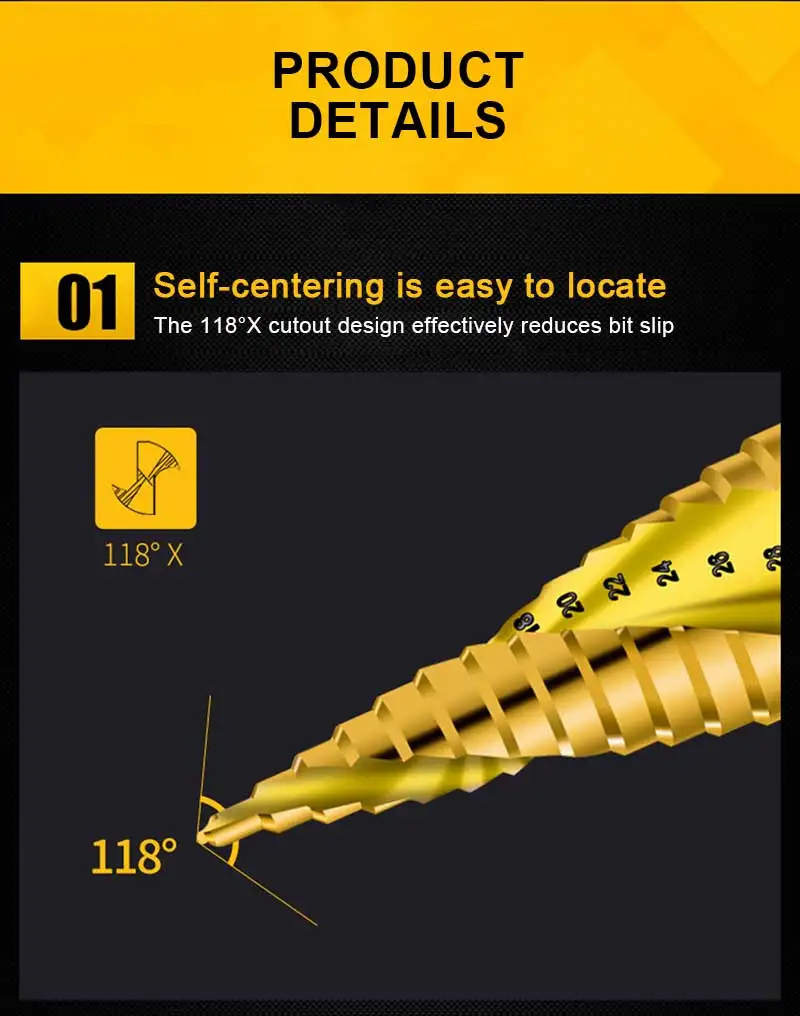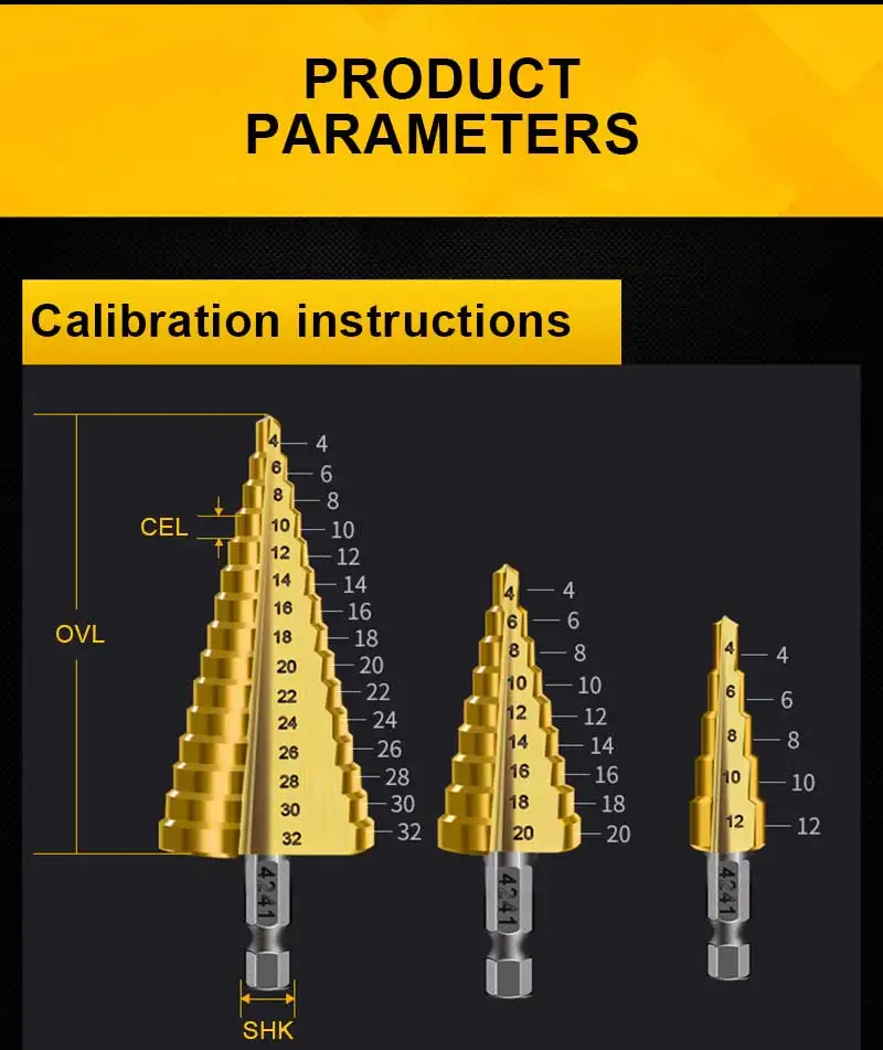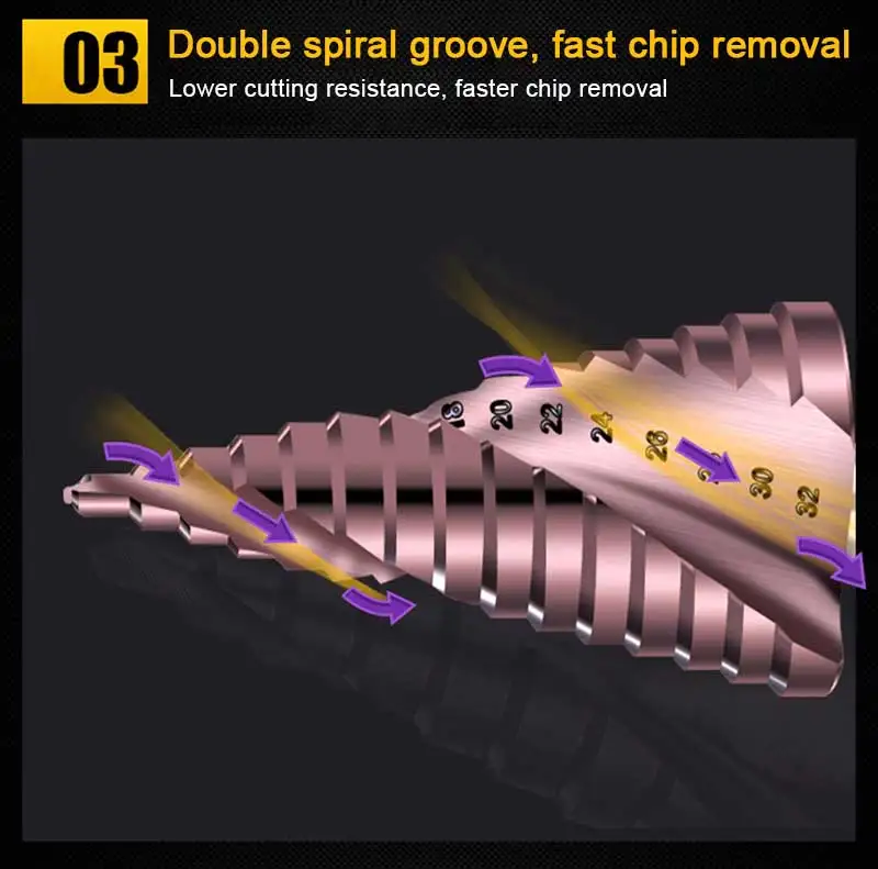 Ступенчатое сверло с кобальтовым титановым покрытием UCHEER, с треугольным хвостовиком, 4-124-204-32