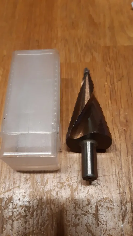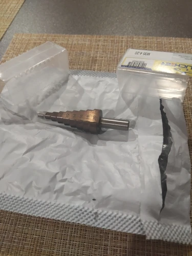 К продавцу претензий нет. Маркировки на сверле нет. Только цифры диаметра на каждой ступени. Намек на то, что сверло из стали М35 только обозначение на бумажной наклейке на футляре, в котором находится сверло. На днях поеду в гараж, надо рассверлить 4 стальных шайбы с 15 до 16 мм. Это будет хороший тест. По результатам отпишусь.