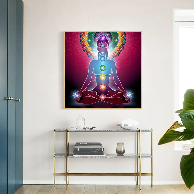 Холсте Плакаты принты индийской статуи Будды медитации 7 Мандала чакр психоделические Йога Бохо Wall Art Картины декором