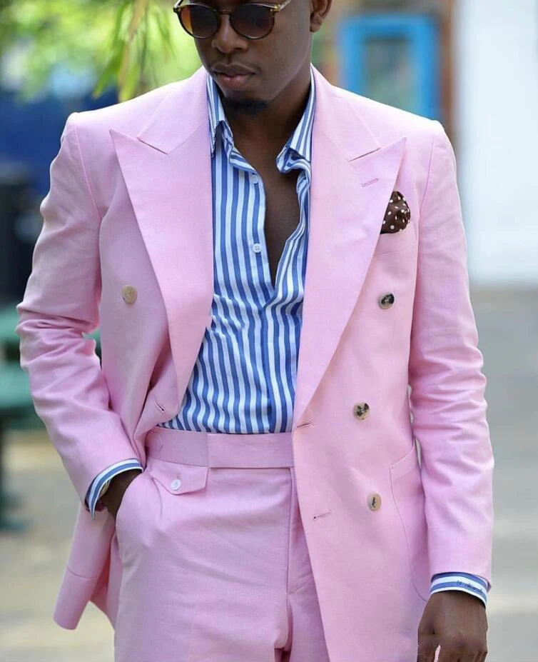 Костюм-Двойка для жениха, пиджак и брюки, розовый