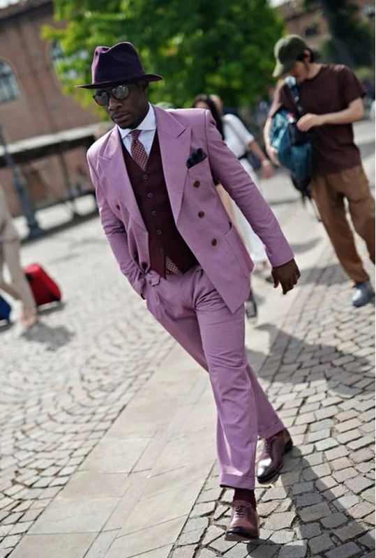 Изготовленный На Заказ Розовый Модный мужской костюм Дешевые Костюм...