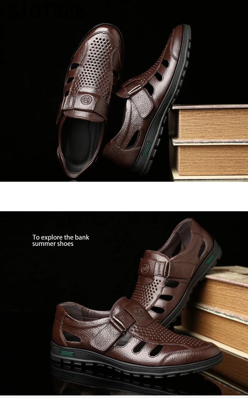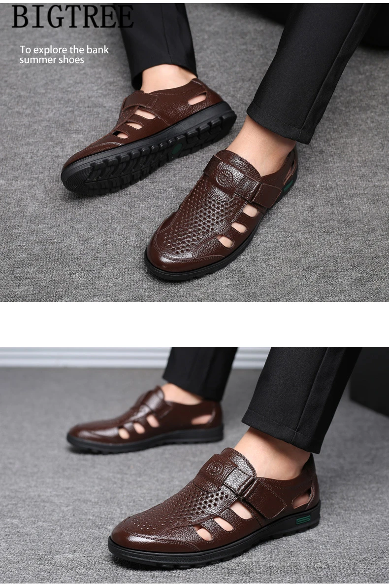 Мужские кожаные сандалии с перфорацией, удобные и дышащие мужские д...