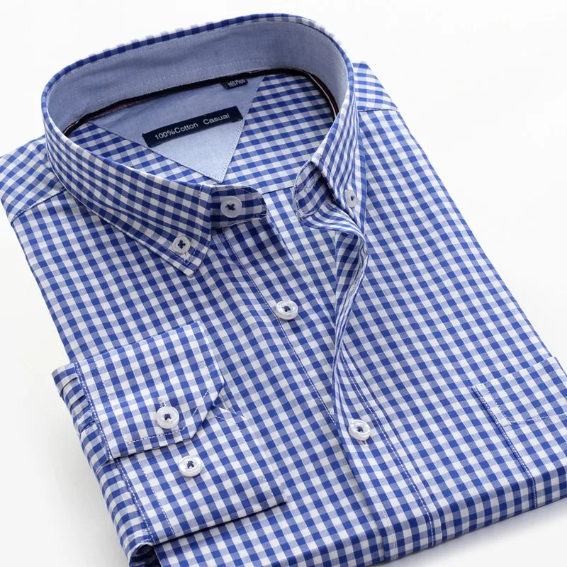 Рубашка мужская в клетку, с длинным рукавом, 100% хлопок, 2021